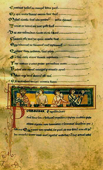 1. | O potores exquisiti,licet sitis sine siti,en bibatis expeditiet scyphorum inobliti!scyphi crebro repetitinon dormiant,et sermones inauditiprosiliant.