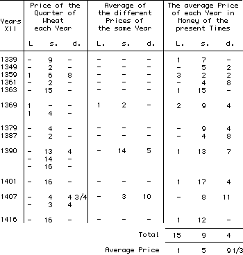 Prices of the Quarter of nine Bushels of the best or highest priced Wheat at Windsor Market, on Lady-day and Michaelmas, from 1595 to 1764, both inclusive; the Price of each Year being the medium between the highest Prices of those Two Market Days.