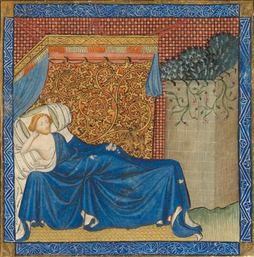 16 | Que songes est senefianceDes biens as genz e des enuiz;Car li plusor songent de nuizMaintes choses covertement |