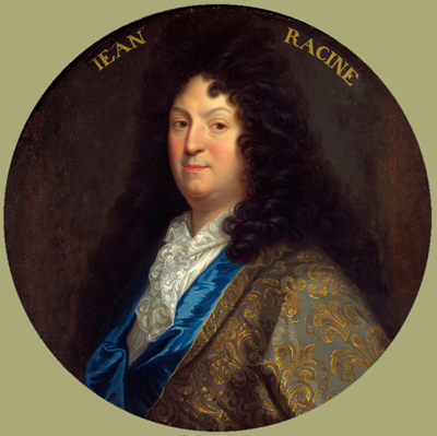 Jean Racine, dramaturge français, est né à La Ferté-Milon en 1639. Orphelin à quatre ans, il est élevé par sa grand-mère. Elle le fait admettre aux Petites-Écoles janséniste de l'abbaye de Port-Royal. En 1658, il quitte Port-Royal pour mener une vie mondaine à Paris. Il se brouille avec les jansénistes pour se consacrer au théâtre. Après le succès d'Andromaque (1667), il écrit huit tragédies dont Britannicus (1669), Mithridate (1673) et Phèdre (1677). En 1677, Racine se marie et il se réconcilie avec ses maîtres jansénistes. En même année, il devient, avec son ami Boileau, historiographe de Louis XIV. Ses dernières pièces, Esther (1689) et Athalie (1691), sont des tragédies bibliques, écrites à la demande de Madame de Maintenon pour les élèves de l’institution religieuse de Saint-Cyr. Pendant ses dernières années, il mène une vie pieuse et meurt à Paris en 1699.