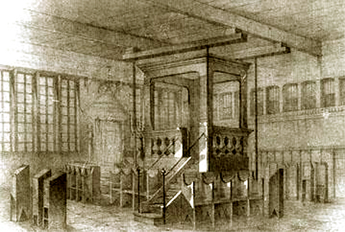 Ferner hat in einer Nacht kurz vor diesem Vorfall die Frau des reichen Jakob Krumbach, der sein Haus dicht neben der Synagoge hat, einen großen Lärm in der Synagoge gehört, als wenn Diebe darin wären und alles herausnähmen und als wenn Leuchter umgefallen wären. Die Frau hat ihren Mann geweckt und ihm das gesagt. Da haben sie nach dem Synagogendiener geschickt und die Synagoge aufschließen lassen, aber da war kein Laut und keine Antwort.“ (1. B. Kön. 18,46.) Man hat nicht gefunden, daß ein Stückchen von seinem Platz verrückt gewesen ist. Man weiß also nicht, durch wen dieses Unglück gekommen ist.“ (Jona 1,7.)