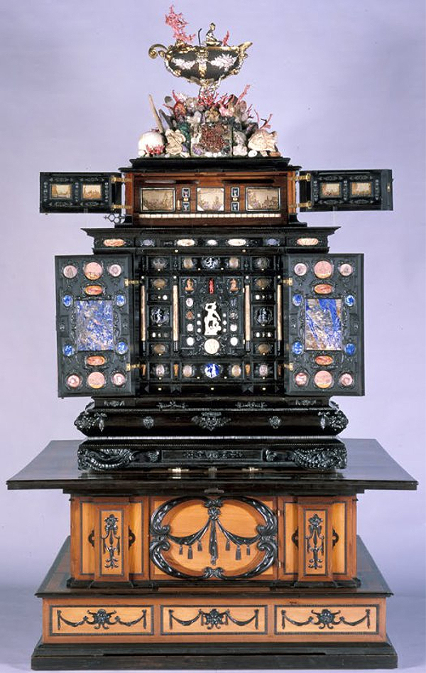 Den Kunstschrank Gustav Adolfs ließ Philipp Hainhofer von 1625 bis 1631 zunächst für seine Kunstkammer anfertigen. Als 1632 der schwedische König siegreich in Augsburg einzog, kaufte die Stadt Augsburg den Schrank von Hainhofer zum Preis von 6500 Reichstalern, um ihm dem König zu schenken. Er befindet sich heute in der Kunstsammlung der Universität von Upsala. Die Ornamente ds Schranks sind in Holz geschnitzt. Außer den bemalten Steinen sind köstliche italienische Niellen, vergoldete Bronzereliefs, Perlmutterarbeiten u. a. in den Körper des Schrankes eingefügt. Der Inhalt besteht aus ähnlichen Gebrauchsgegenständen wie im Pommerschen Kunstschrank, aber auch aus Naturalien und Kuriositäten, wie sie der Florentiner Schrank enthält. Die Höhe des Schrankes ohne Sockel beträgt 1,84 m, die Höhe des Sockels 0,63 m.