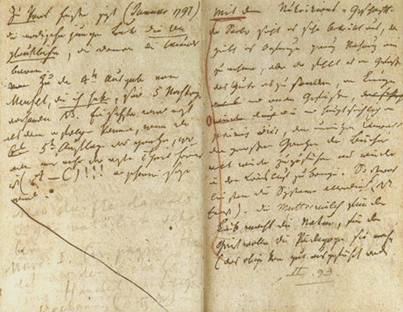 Mit dem Nutritions=Geschäffte der Seele sieht es sehr betrübt aus, da giebt es Öffnungen genug Nahrung ein zu nehmen, aber da fehlt es an Gefäßen das Gute ab zu sondern, an Lungen und an den Gefäßen und hauptsächlich an primis viis, den unnützen Unrath dem großen Gantzen der Bücher welt wieder zuzuführen und wieder in den Kreislauf zu bringen. So etwas leisten die Systeme allerdings (NB Ernst). Die Muttermilch für den Leib macht die Natur, für den Geist wollen die Pädagogen sie machen (das obige kan gut ausgeführt werden [)]. [Wilhelm Lichtenberg:] II.93