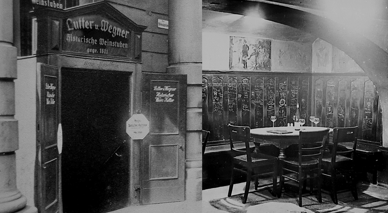 Hoffmann und sein Freund, der Schauspieler Ludwig Devrient (1784 -1832) im Kellerlokal Lutter & Wegner und in der Schonertschen Weinstube.