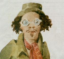 links oben: Karikatur von Carl Johan Lindström um 1828 (Deutsches Literaturarchiv Marbach) links unten: Selbstbildnis (Federzeichnung aus der Tübinger Zeit) rechts oben: Gedenktafel an Waiblingers Wohnhaus in der Via Guilia in Rom rechts unten: Waiblingers Grab auf dem protestantischen Friedhof in Rom