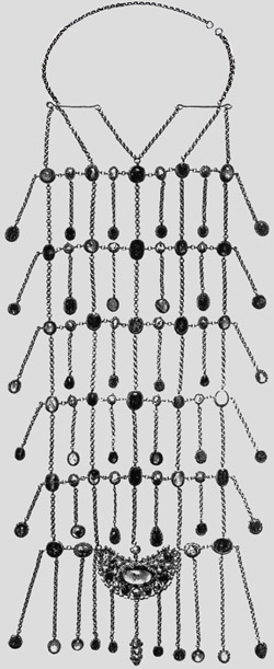 355 | (E gran)di boga gracili pendendo catena.(Addidi)t his modicam quam, pretendendo diatim,. . . . . . am eum qua configat, ne stet aperta,(Pectora) ne possint cerni maiuscula si sint. -(Ex aur)o lunam solidam super addidit unam |