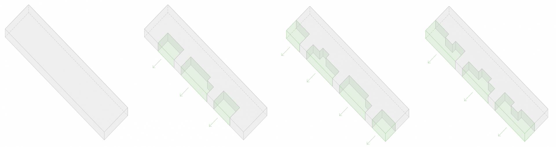 Entwurfsidee: Schichtung, Subtraktion, multifunktionale Erschließung als Erlebnis