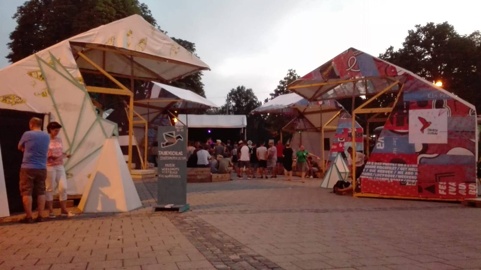 Eine Vielzahl der E2D-UP!-Projekte sind inzwischen auf den unterschiedlichsten Kulturveranstaltungen der Region zum Einsatz gekommen, etwa den Augsburger Sommernächten, den Augsburger Radelnächten, im Botanischen Garten, dem Festival Asche zu Farbgut, Automatic Open und ... zuletzt auch im Rahmen des Augsburger Friedensfest-Projektes "Taubenschlag" 2018. Als Ort der Begegnung und des Dialogs auf dem Willi-Brandt-Platz wurde vom 02.-08. August in den E2D-Up! Pavillons diskutiert, getanzt und gefeiert. Hier einige Eindrücke. Die nächste Runde des Lebenszyklus ist derzeit die Umplanung der Bühnen-Pavillons zu Schutzunterkünften eines Augsburger Waldkindergartens.