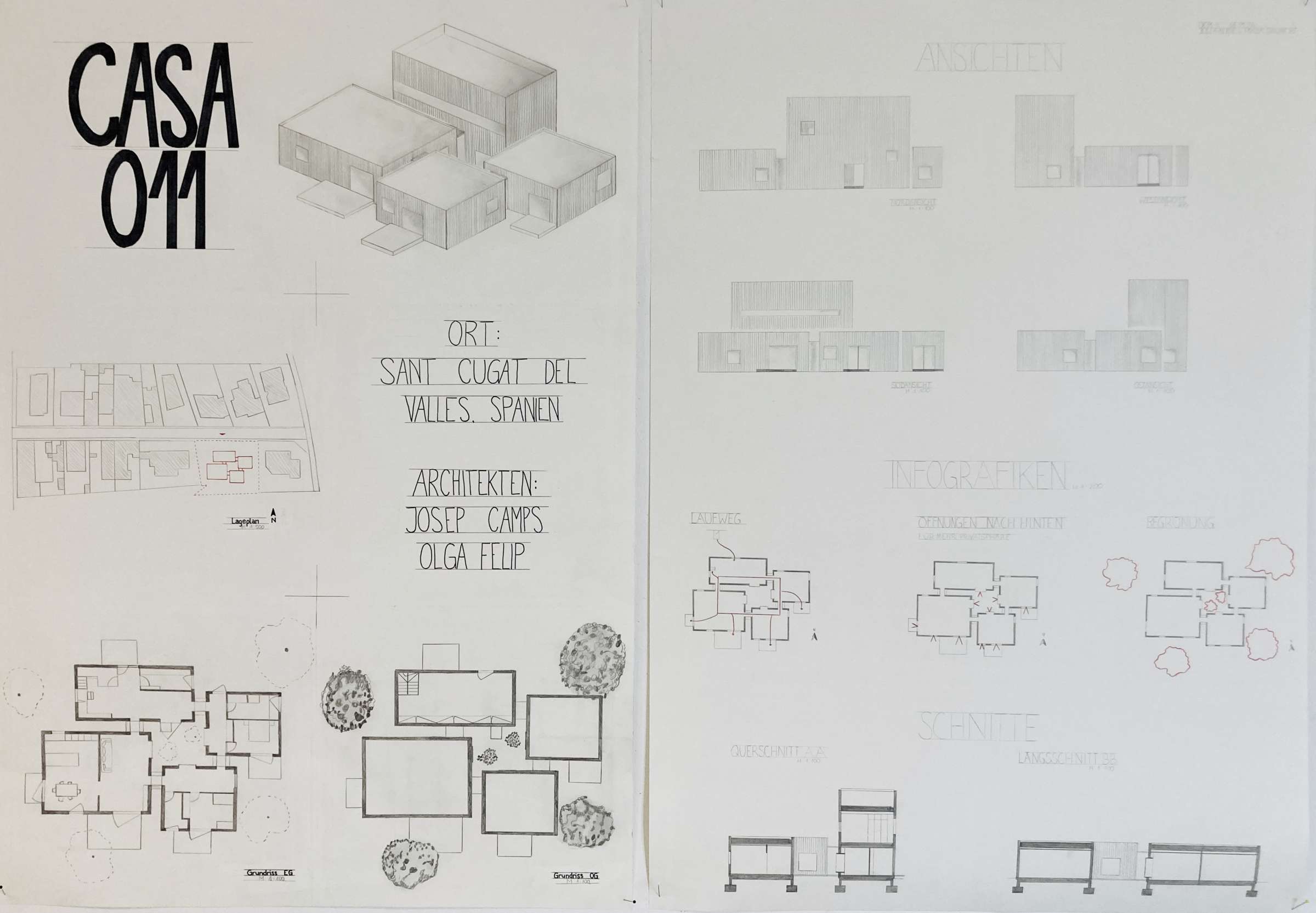 Im Modul "Designmethodik 1" ging es zunächst darum, anhand bereits realisierter Gebäude architektonische Konzepte nachzuvollziehen, zu entschlüsseln und in Zeichnung und Modell zu kommunizieren. Im zweiten Schritt wurde das Freihandzeichnen im Rahmen einer Augsburg-Exkursion geübt. Schließlich die größte Herausforderung: Die Studierenden präsentierten ihren ersten eigenen Entwurf "Vogelwarte - Umweltbildungsstation im Naturschutzgebiet Allgäuer Hochalpen" im Rahmen einer großen Ausstellung auf den Fluren der Fakultät.