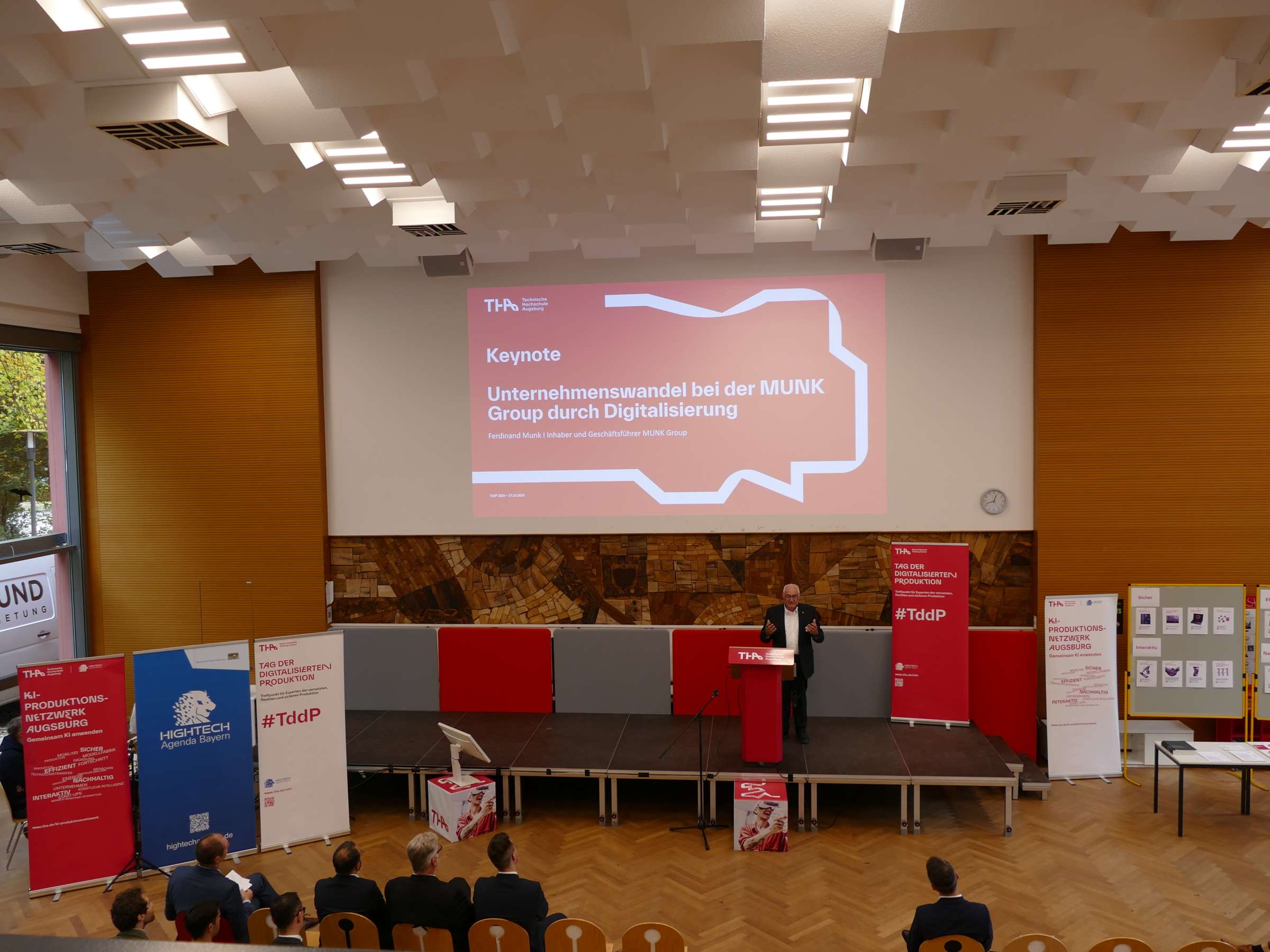 „Diese Art der Veranstaltung hilft, die Industrie, den Mittelstand und das Handwerk mit den Studierenden und der Hochschule zu vernetzen. Dadurch entstehen wertvolle Impulse für die Stärkung des Wirtschaftsstandorts Deutschland“, sagt Ferdinand Munk, Inhaber und Geschäftsführer der MUNK Group. Er hatte die Keynote „Unternehmenswandel bei der MUNK Group durch Digitalisierung“ gehalten.
