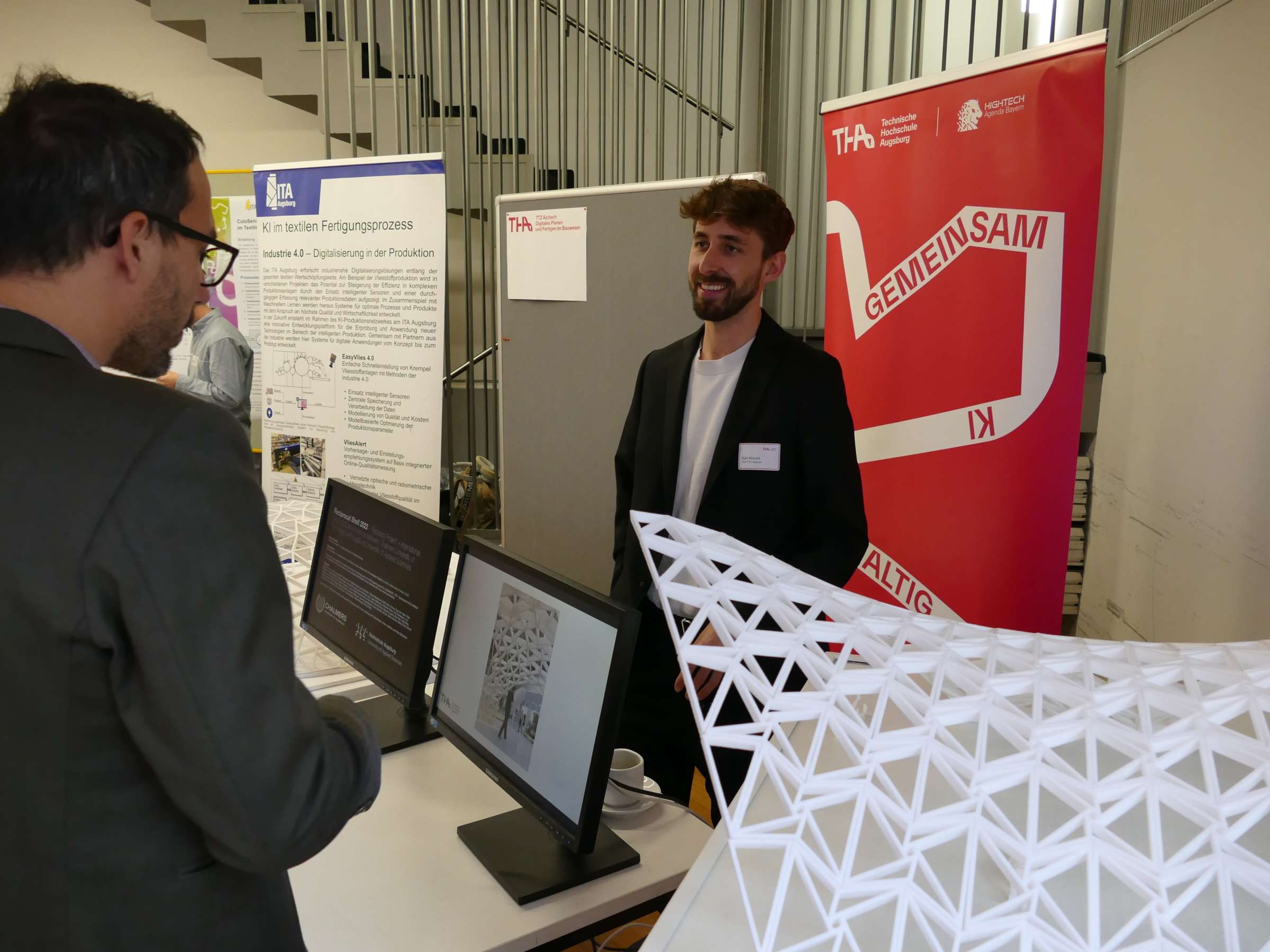 Rund 80 Teilnehmende aus kleinen und mittleren Unternehmen tauschten sich beim „Tag der digitalisierten Produktion“ mit den Forschenden der Technischen Hochschule Augsburg intensiv aus