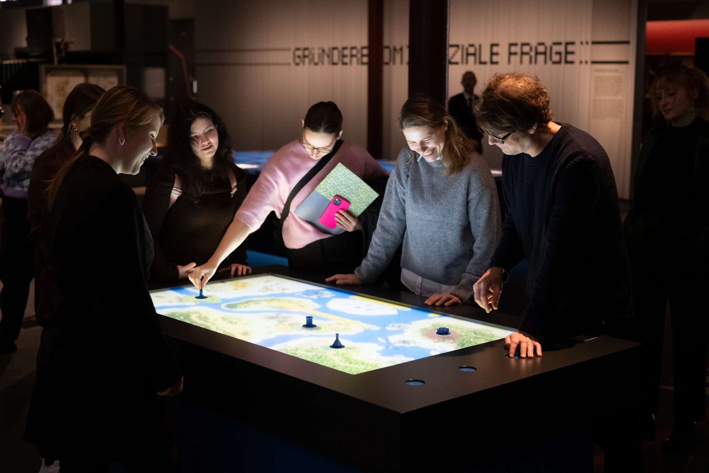 Beim digitalen Spieltisch „Shirt Quest“ im tim entscheiden allein die Spielerinnen und Spieler, welche Interessen sich letztlich durchsetzen. So entsteht ein dynamisches Spielerlebnis, das die Herausforderungen der globalen Textilindustrie verständlich und erfahrbar macht.