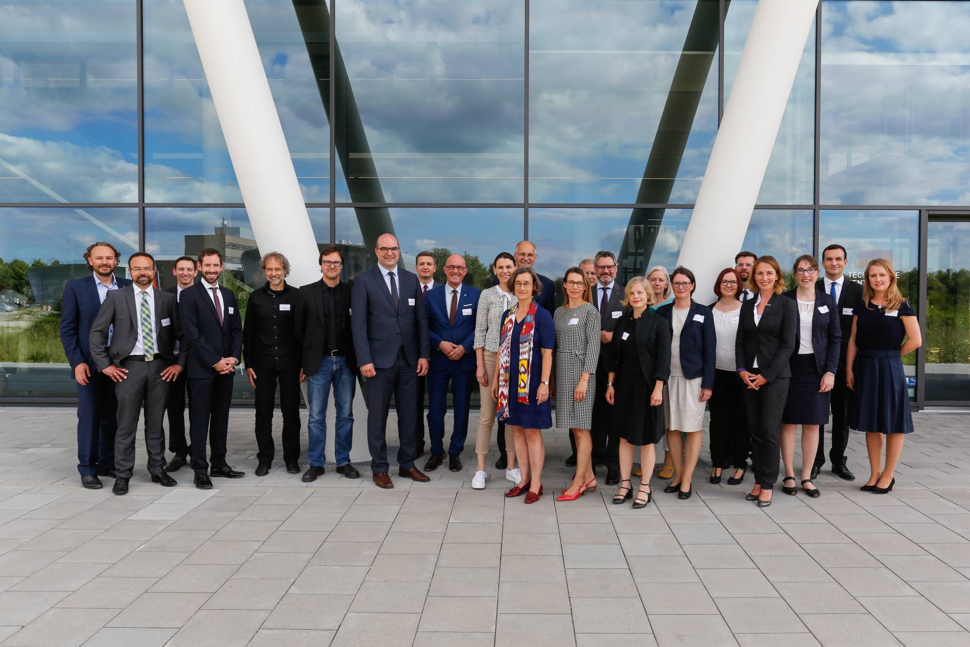 Der feierliche Auftakt von HSA_transfer fand am 19. Juni 2018 im Technologiezentrum Augsburg statt. Die Veranstaltung eröffnete Prof. Dr. Elisabeth Krön, Vizepräsidentin für Forschung und Wissenstransfer der Hochschule Augsburg. Als Ehrengast richtete die Bayerische Staatsministerin für Wissenschaft und Kunst, Prof. Dr. Marion Kiechle, eine Ansprache an die Gäste. Der Augsburger Oberbürgermeister Dr. Kurt Gribl hob in seiner Rede die Bedeutung von HSA_transfer für die Region Bayerisch-Schwaben hervor. Wie ein Transfer zwischen Hochschule und Wirtschaft gelingen kann, skizzierte Prof. Dr. Andrew Ross von der Faculty of Engineering and Technology, School of Built Environment, Liverpool John Moores University, in dem Impulsvortrag „Knowledge Transfer Partnerships – an UK approach to Transfer between Industry and University“. Wertvolle Impulse kamen aus der anschließenden Diskussionsrunde „Engagiert vor Ort – die HSA_transfer und ihre Bedeutung für die Region“ mit Vertreterinnen und Vertretern der geplanten Teilprojekte. Zeit für Gespräche und zum gegenseitigen Kennenlernen bestand im Anschluss beim Stehempfang.