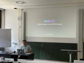 Im zweiten Vortrag gab Michael Spindler Einblicke in die Entwicklung des Akiko-Rechners. Der Akiko-Rechner ist eine eigenständige Computer-Architektur die Commodore-Amiga-Computer mit neuer Hardware und unter Rückgriff auf Original-ICs abbildet. Aktuell befindet sich eine Notebook-Variante eines Akikio-Rechners in der Entwicklung.