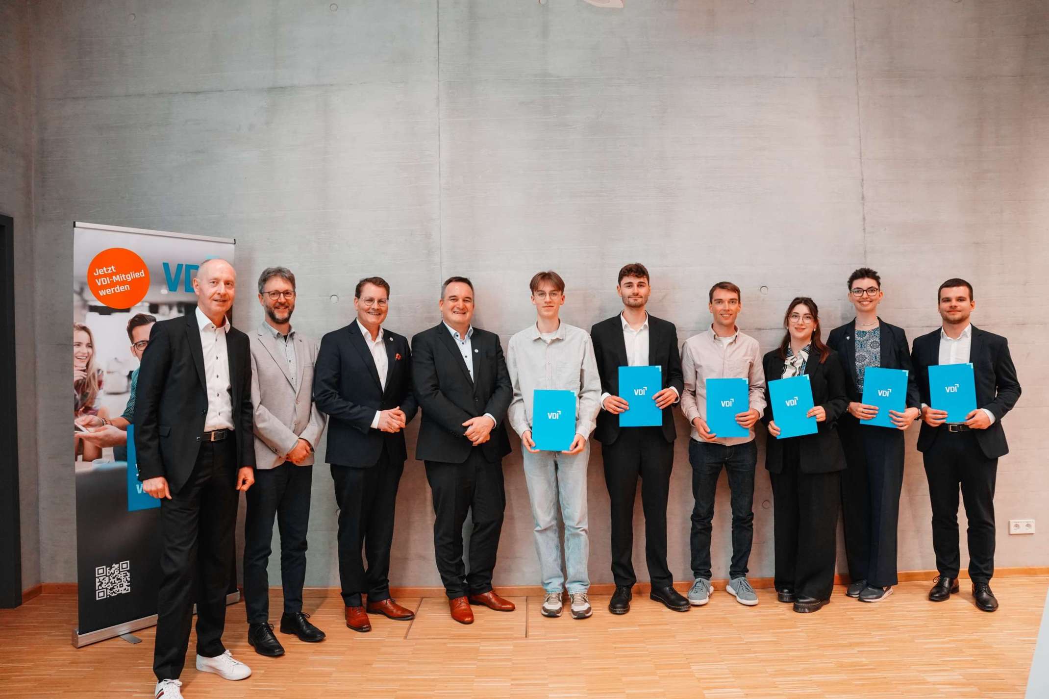 VDI-Direktor Adrian Willig überreichte die Preise an die Ausgezeichneten gemeinsam mit dem Bezirksvorsitzenden Christian Könitzer und seinem Stellvertreter Stefan Knobloch im Technologiezentrum Augsburg (TZA).