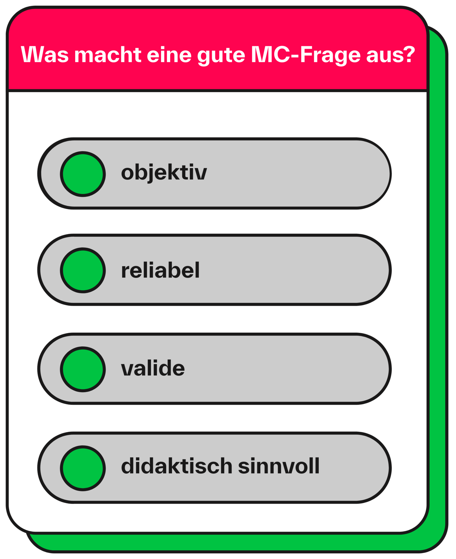 Multiple-Choice-Fragen sind in vielen Studiengängen und vor allem in großen Lehrveranstaltungen ein zentrales Prüfungsformat. Damit sie verlässlich, fair und kompetenzorientiert prüfen, müssen sie sorgfältig konstruiert sein.