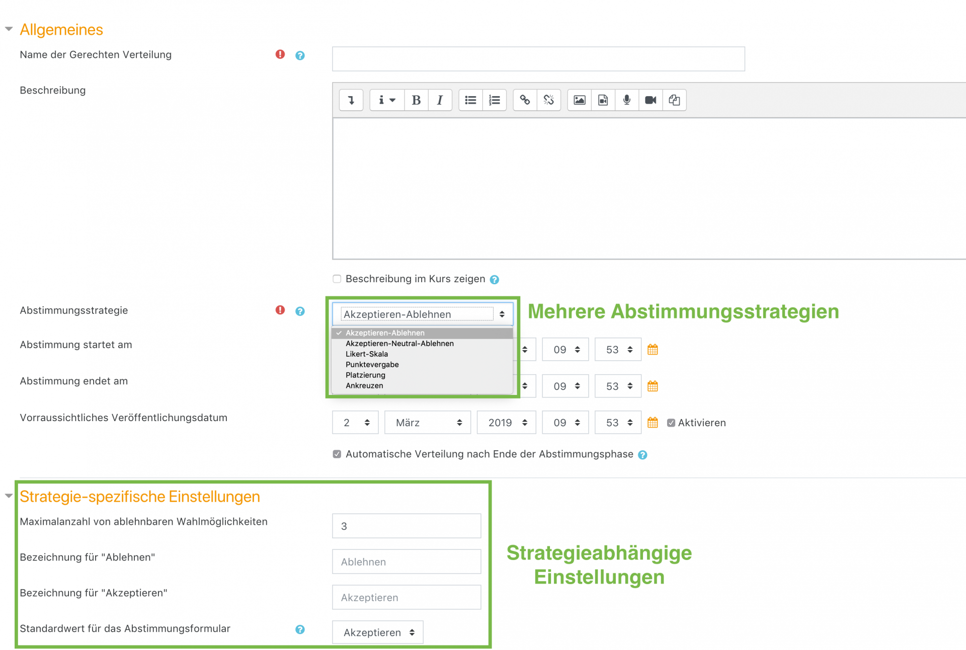 Mit dem neuen Plug-in Gerechte Verteilung können Studierende ihre Präferenzen für Themen, Projekte oder Gruppen abgeben. Das System versucht dann über einen Algorithmus eine möglichst gerechte Verteilung nach den Präferenzen der Studierenden vorzunehmen. Somit vermeiden Sie das first-come first-serve Prinzip.