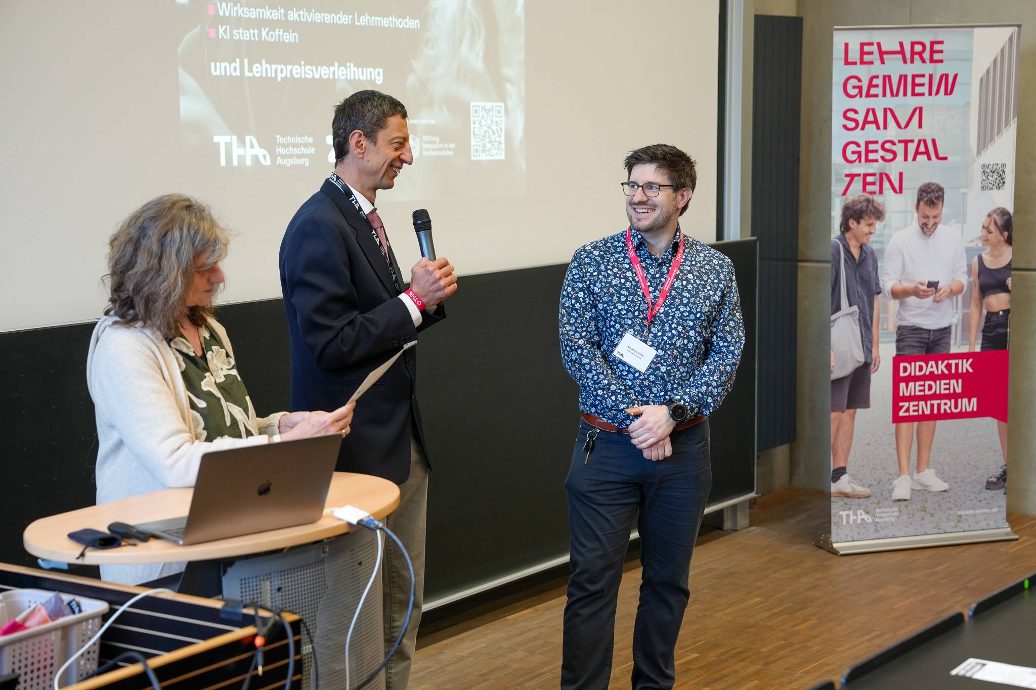 In diesem Jahr wurde der Preis für gute Lehre zum dritten Mal feierlich verliehen. Die Nominierungen erfolgen durch die Studierenden und werden anschließend von einer Jury bestehend aus der Studentischen Vertretung, dem Vizepräsidenten für Studium und Lehre sowie der Leitung des Didaktik-Medien-Zentrums und dem Sprecher der Studiendekane sorgfältig geprüft und ausgezeichnet. Durchgesetzt haben sich in der Kategorie Vorlesung Prof. Dr.-Ing. Rüdiger Weitzmann und in der Kategorie Seminar oder Projekt Prof. Dr. habil. Klaus Kellner. Oliver Heiss erhielt den Lehrpreis in der Kategorie Lehrbeauftragte. Außerdem wurde Prof. Dr.-Ing. Matthias Ritter das Zertifikat Hochschullehre Bayern überreicht. Das DMZ gratuliert allen Preisträgerinnen und Preisträgern herzlich zu ihrer Auszeichnung für eine engagierte und inspirierende Lehrtätigkeit.