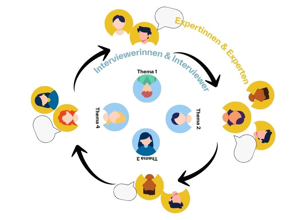 Jeder Interviewerin und jedem Interviewer wird ein spezifisches Unterthema zugewiesen.