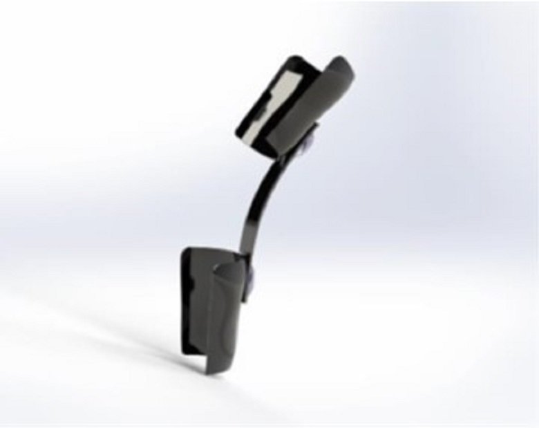 Ziel dieser Forschungsarbeit ist die Entwicklung eines Verbindungsmoduls zwischen einer Ober- und Unterschenkelaufnahme, welches ein menschliches Kniegelenk mit Hilfe einer Steifigkeitsadaption und Energiespeicherung unterstützt. Das Bild zeigt eine beispielhafte Darstellung eines solchen Moduls. Die Realisierung der situativ anpassbaren Steifigkeit soll durch eine quasi-passive Struktur aus Hybridmaterialien und formflexiblen Faserverbundwerkstoffen ermöglicht werden. Des Weiteren wird eine Minimierung von Aktuatorik-Elementen angestrebt, um das System schlanker, unauffälliger und leichter zu gestalten als vergleichbare existierende Produkte. Um dieses Ziel zu erreichen, ist neben einer adaptiven Steifigkeit auch eine dezentrale Energiespeicherung und -freisetzung auf kleinstem Raum erforderlich. Die Unterstützungsfunktion des menschlichen Kniegelenks ermöglicht die Anwendung in diversen Sektoren – zum Beispiel in der Rehabilitation, der Prävention oder der Implementierung in Exoskelette.
