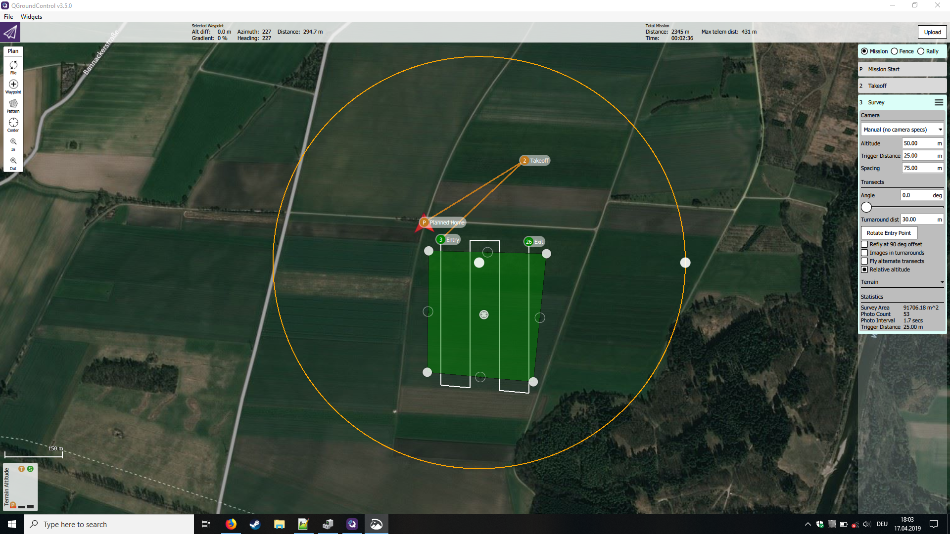 - Abfliegen der Mission erfolgreich.