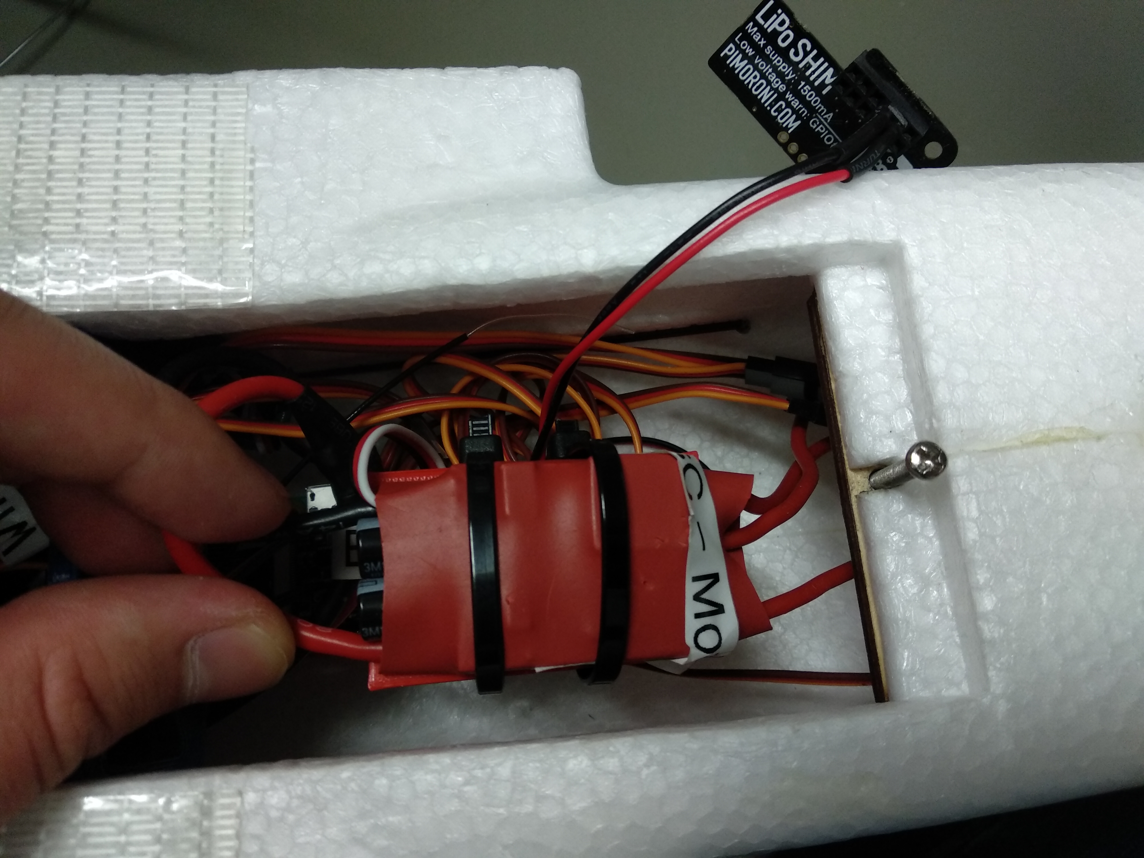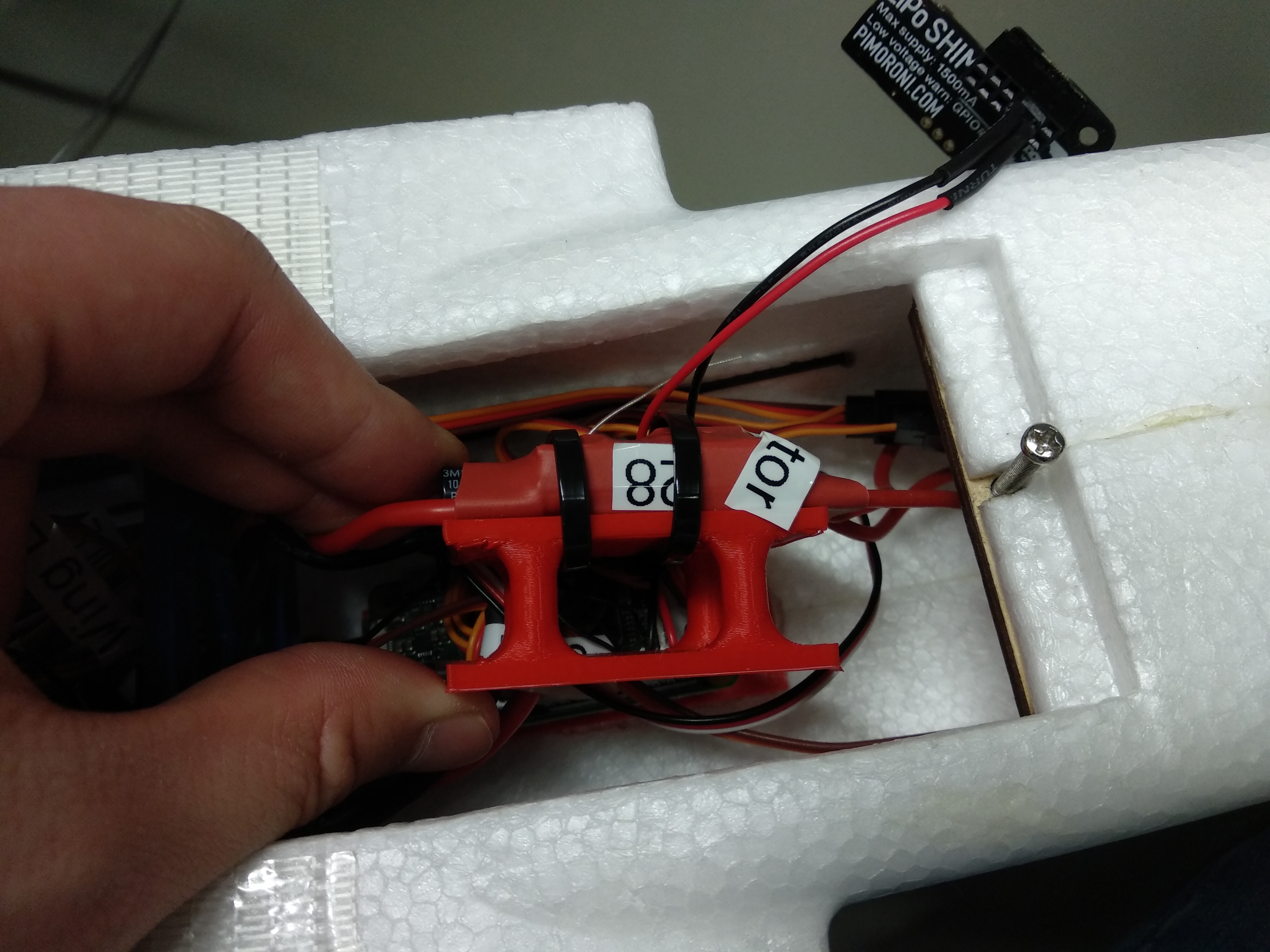 - WICHTIG: Der Drehsinn! Wenn man von hinten aufs Flugzeug guckt, muss der Propeller sich im Uhrzeigersinn drehen! Sollte der Propeller in die falsche Richtung drehen, so mögen das rote und gelbe Kabel getauscht werden. (Am besten mit einem Stück Klebeband und nicht mit dem Propeller testen, Schnittgefahr!)