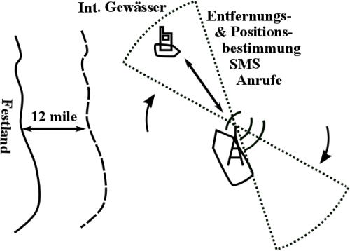 Beim langsamen Schwenken einer Richtantenne soll durch die Signalstärke der Winkel des in Seenot geratenen Bootes zur Basisstation bestimmt werden. Es wäre möglich mehrere Richtantennen auf einem Schiff zu installieren um den Bereich um das Boot schneller abzuscannen.