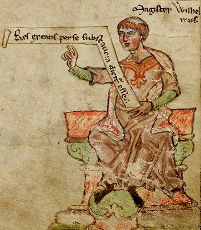 Guillelmus de Conches, philosophus («in omnibus rationem esse quaerendam»), physicus, «grammaticus opulentissimus» (Iohannes Salisburgensis) natus est circa annum 1080 in oppido Normannico Conches. Bernardo Carnotensi discipulus fuit in oppido Carnotense (Chartres). circa annum 1120 ibi fortasse mandatus est magister scholae. obiit circa annum 1154.