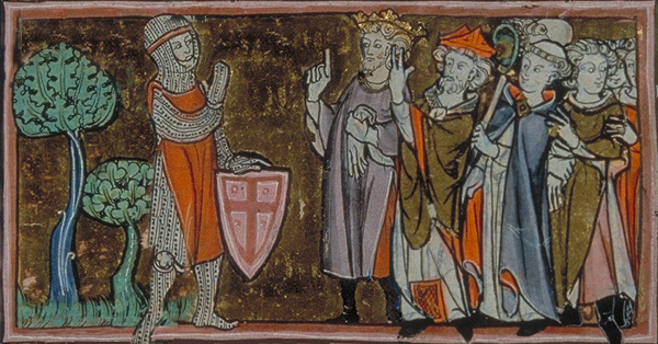 Die Ritter am Wegkreuz, von dem drei verschiedene Wege abgehen