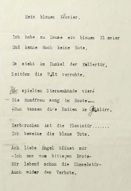 Zerbrochen ist die Klaviatür .......Ich beweine die blaue Tote.