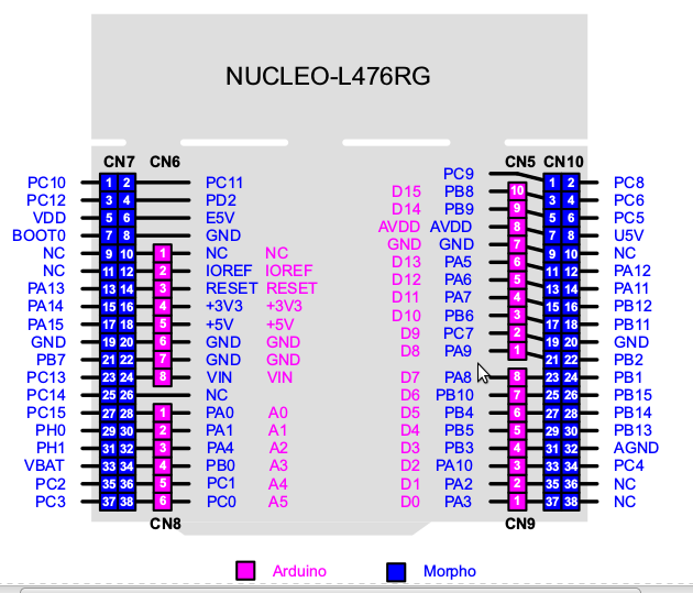 STM32L476 Nucleo Board Pins