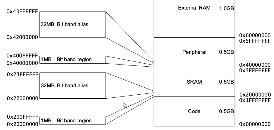 Bitband regions in the memory map (taken from [CM4PM])