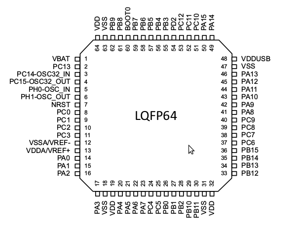 STM32L476Rx LQFP64 pinout. This package is used on our Nucleo-64 board.
