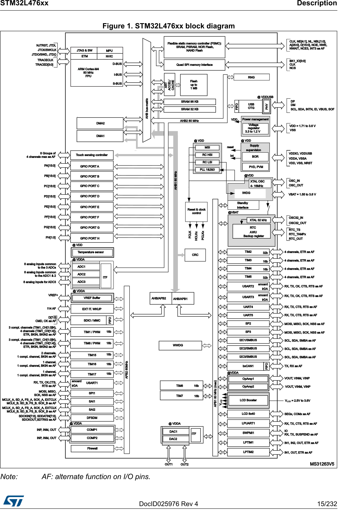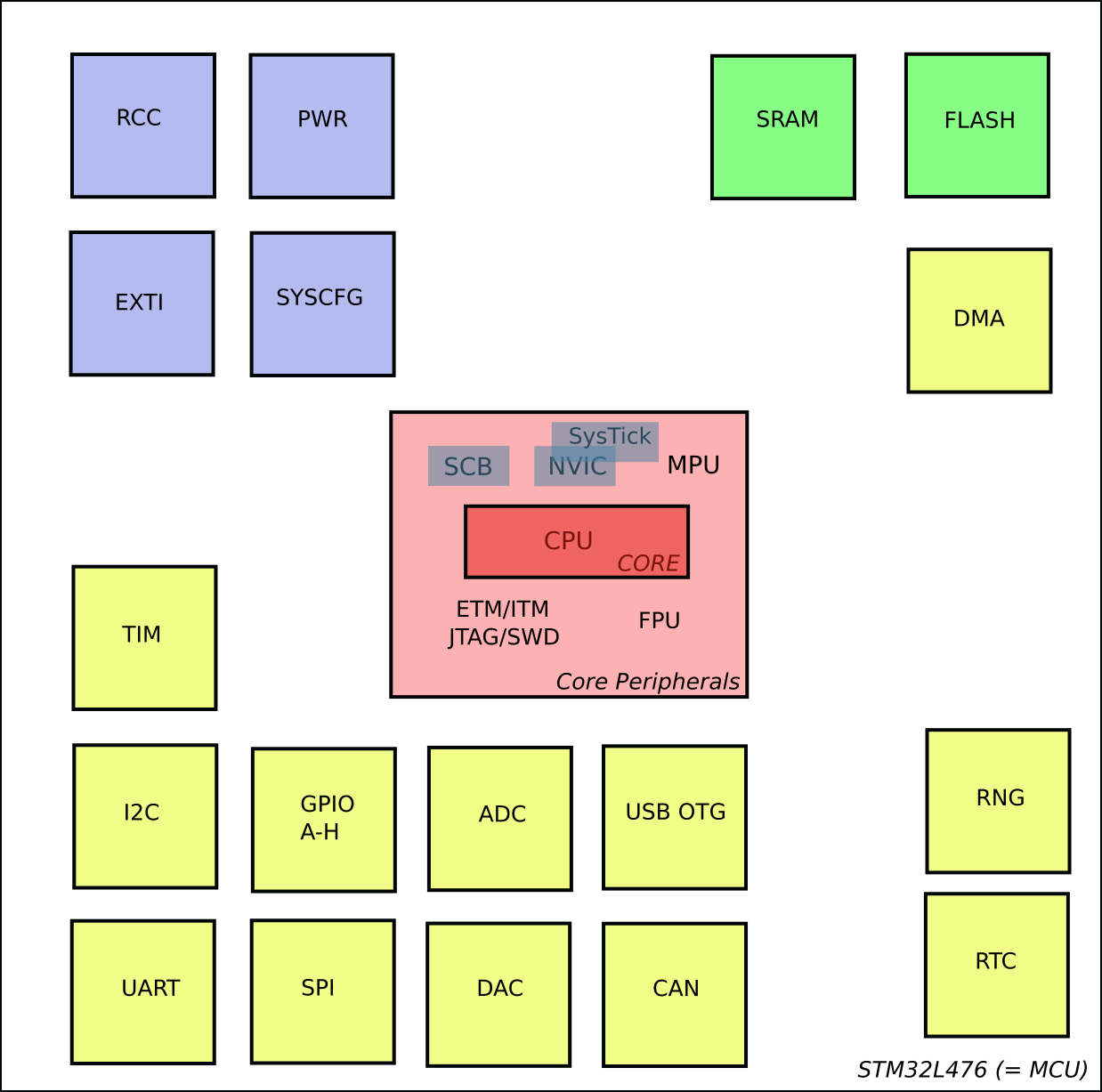 Block diagram of the STM32L476 (taken from [L476DS], p. 15). vergrössern