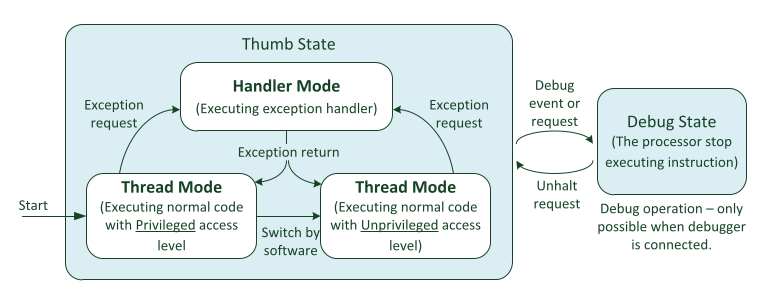 Thumb + Thumb-2 instruction set (no “ARM” instructions)