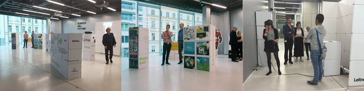 Am 30.6.2016 wurden die Arbeitsergebnisse des Projektes e-transform als ein Marktplatz der Ideen im Konferenzzentrum der Heinrich Böll-Stiftung in Berlin ausgestellt. Das Ausstellungskonzept beruht auf 80 Würfeln, die zu Plattformen für die einzelnen Medienformate zu Ständen arrangiert werden. Die Ausstellung fand zusammen mit der Abschlussveranstaltung des Projekts InnoSmart des IÖW statt. Medienanalyse