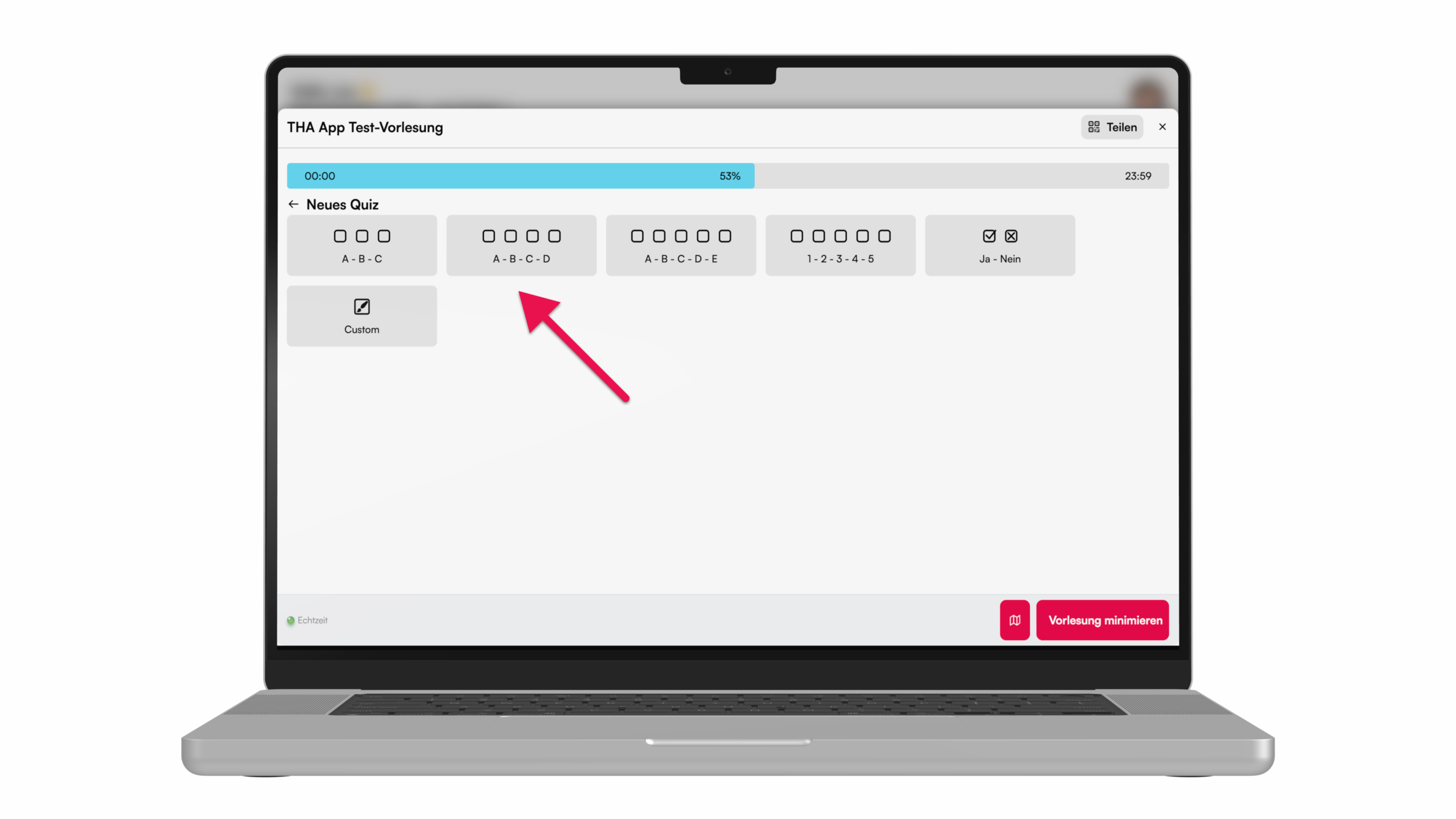 Für mehr Interaktion während der Vorlesung, z. B. mit Peer Instruction, können Wissenstests mithilfe der Quiz-Funktion durchgeführt werden. Hier zeigen wir, wie's geht.