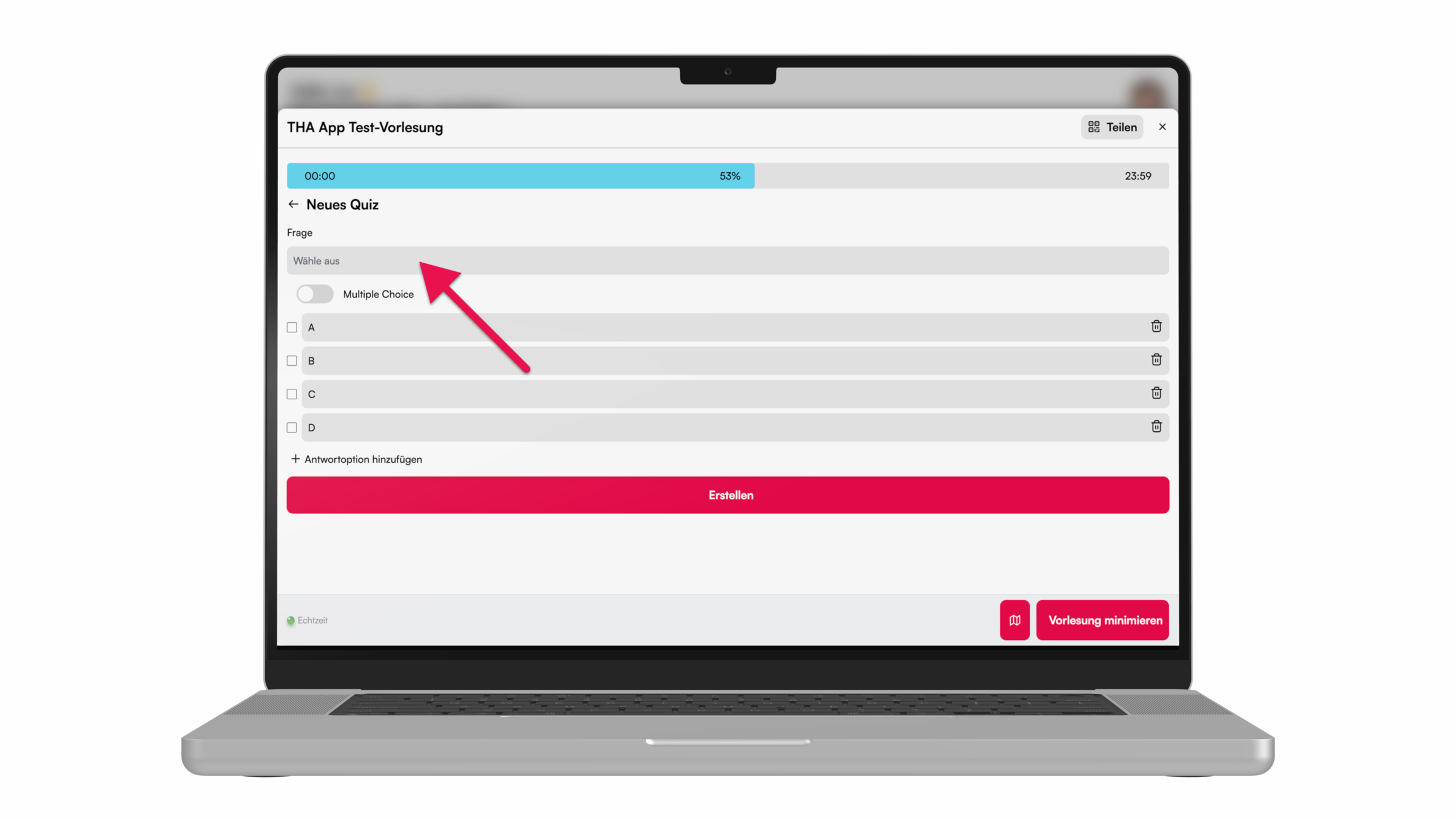 Um ein Quiz erstellen zu können, muss zuvor der jeweiligen Vorlesung beigetreten werden.
