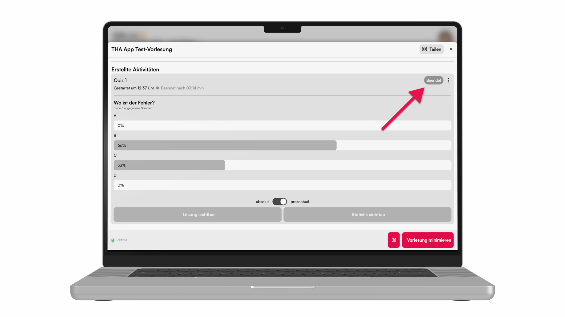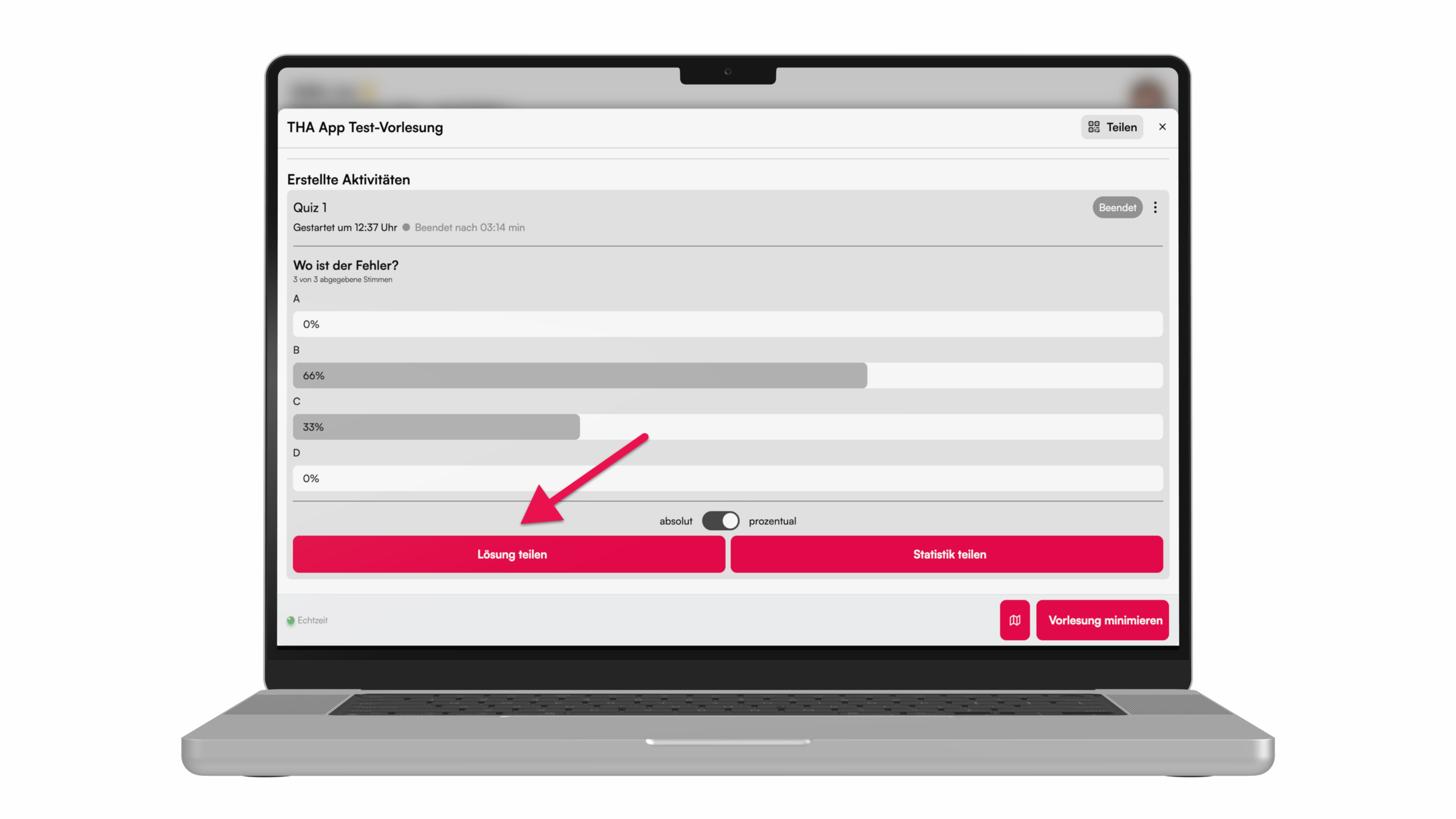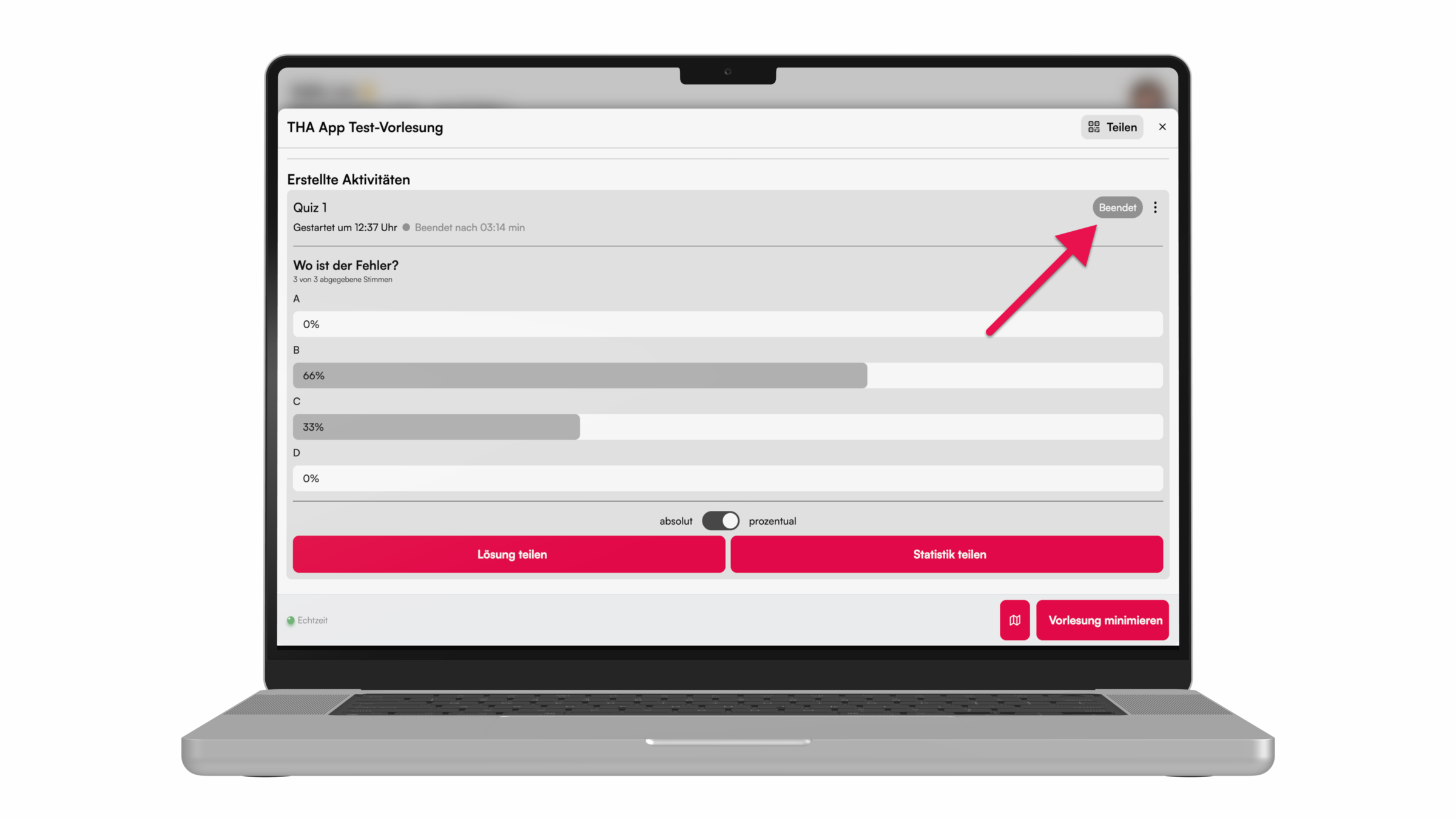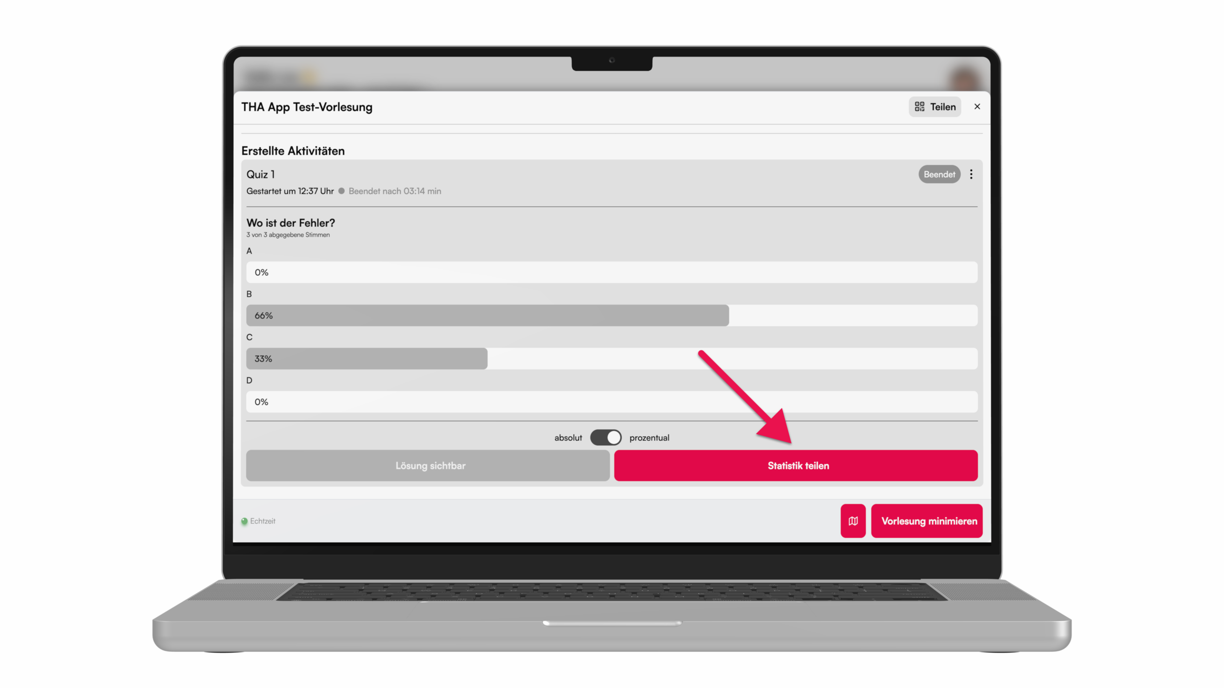 Mithilfe des Quizzes kann Peer Instruction einfach in der Vorlesung eingesetzt werden.