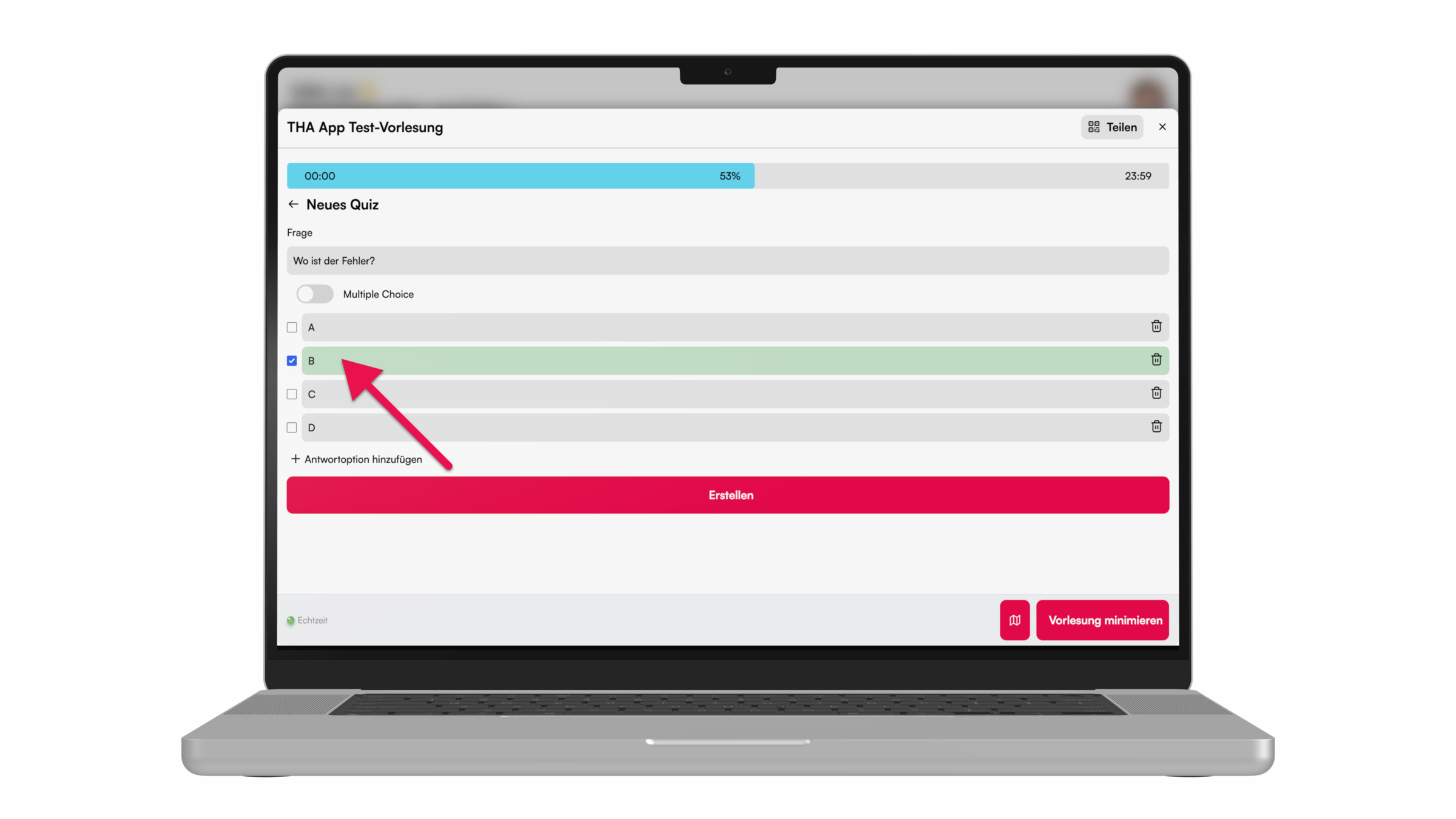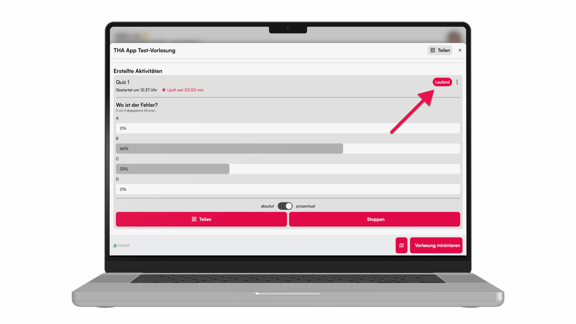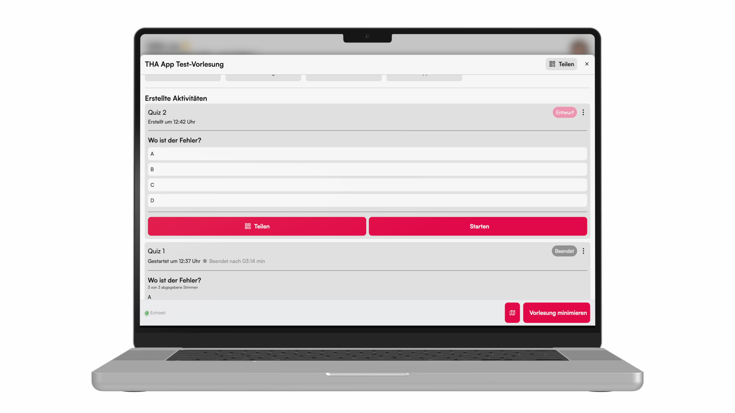 Mithilfe des Quizzes kann Peer Instruction einfach in der Vorlesung eingesetzt werden.