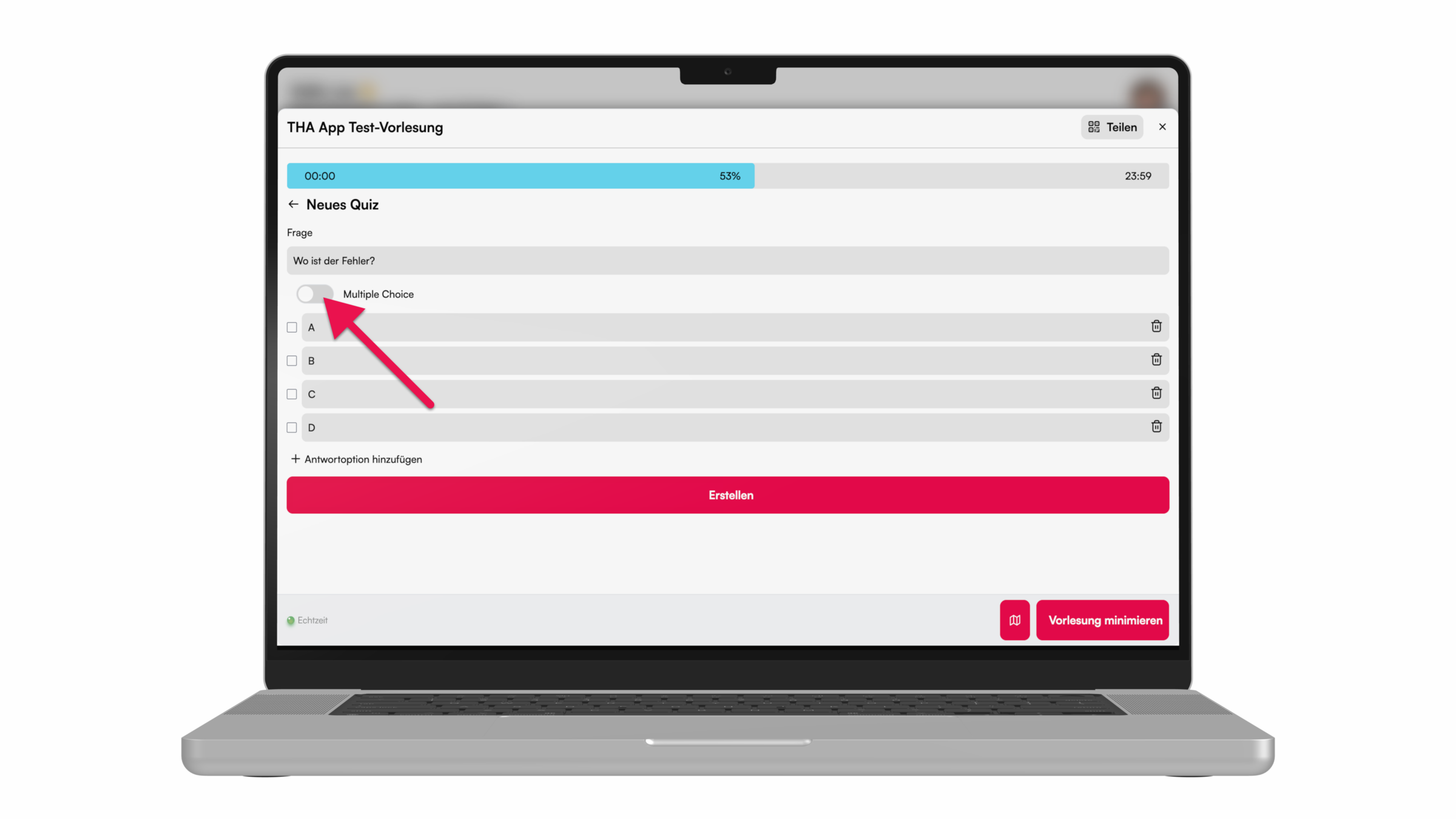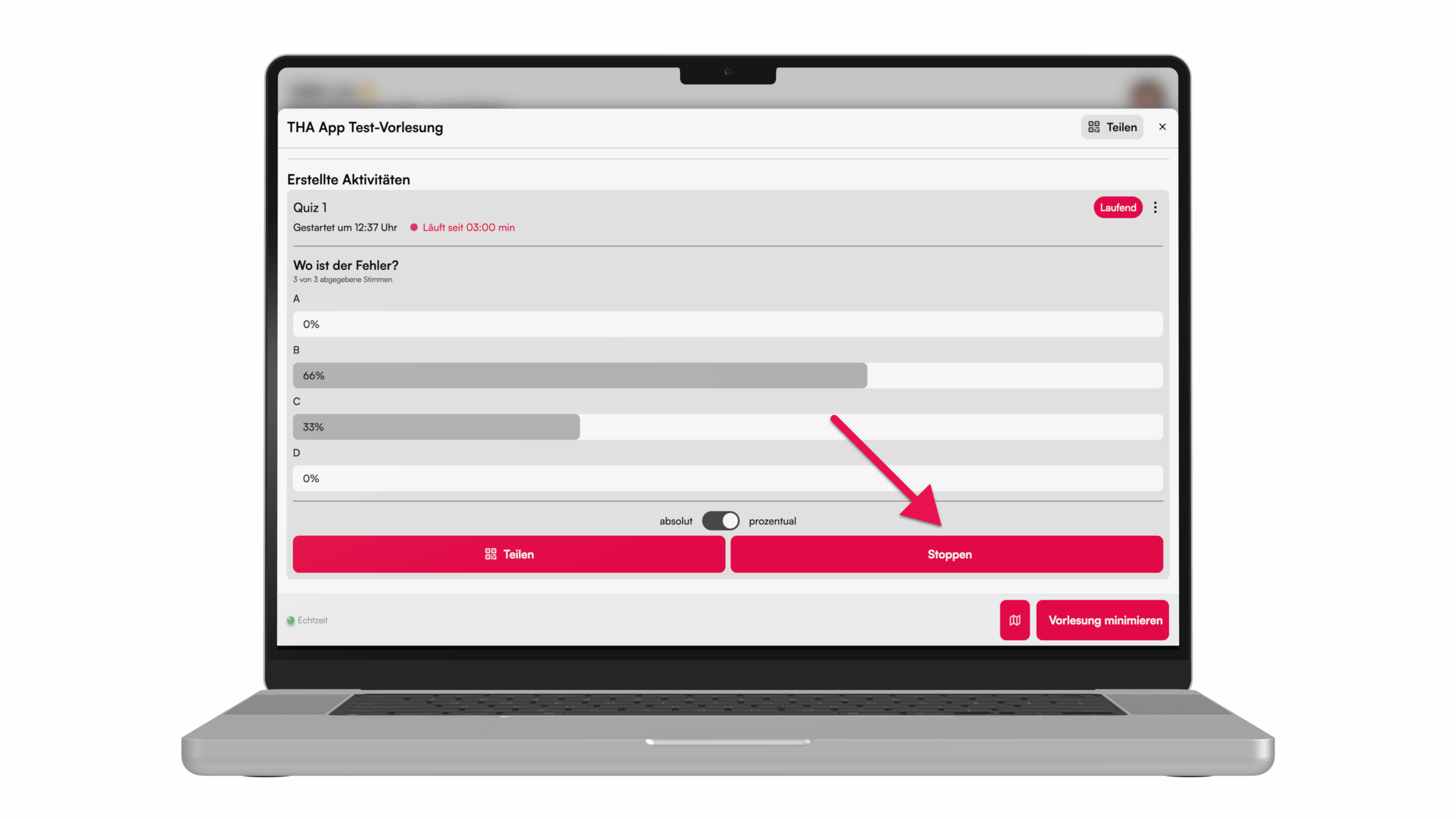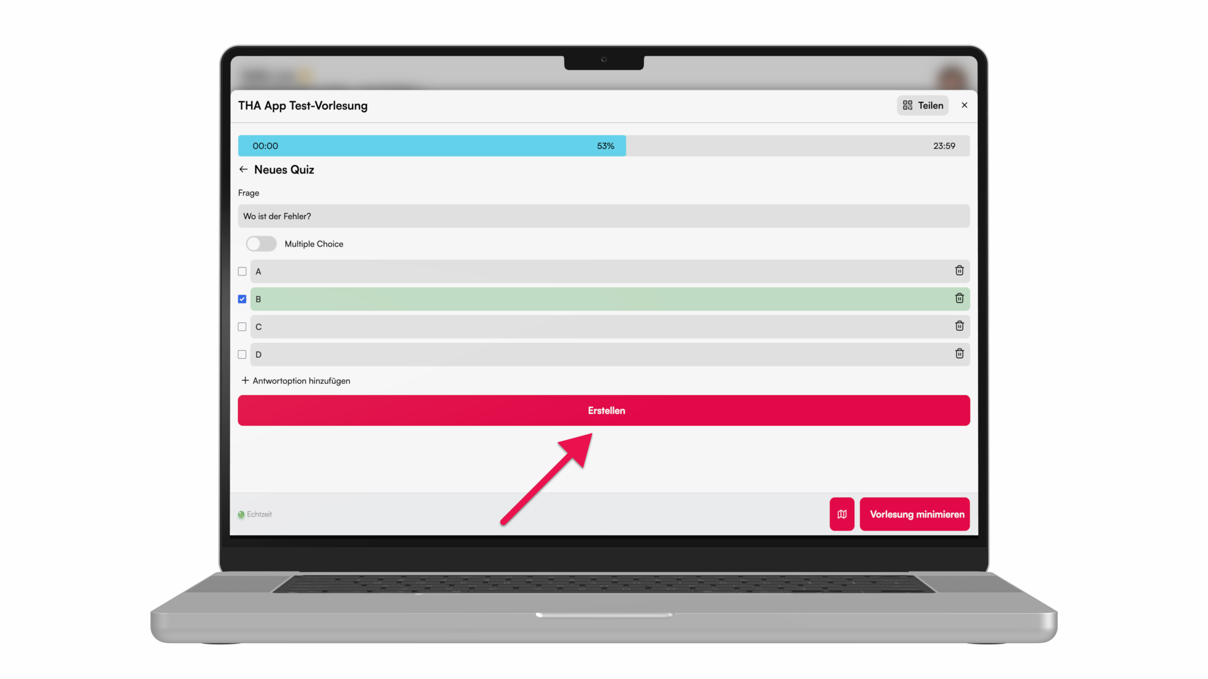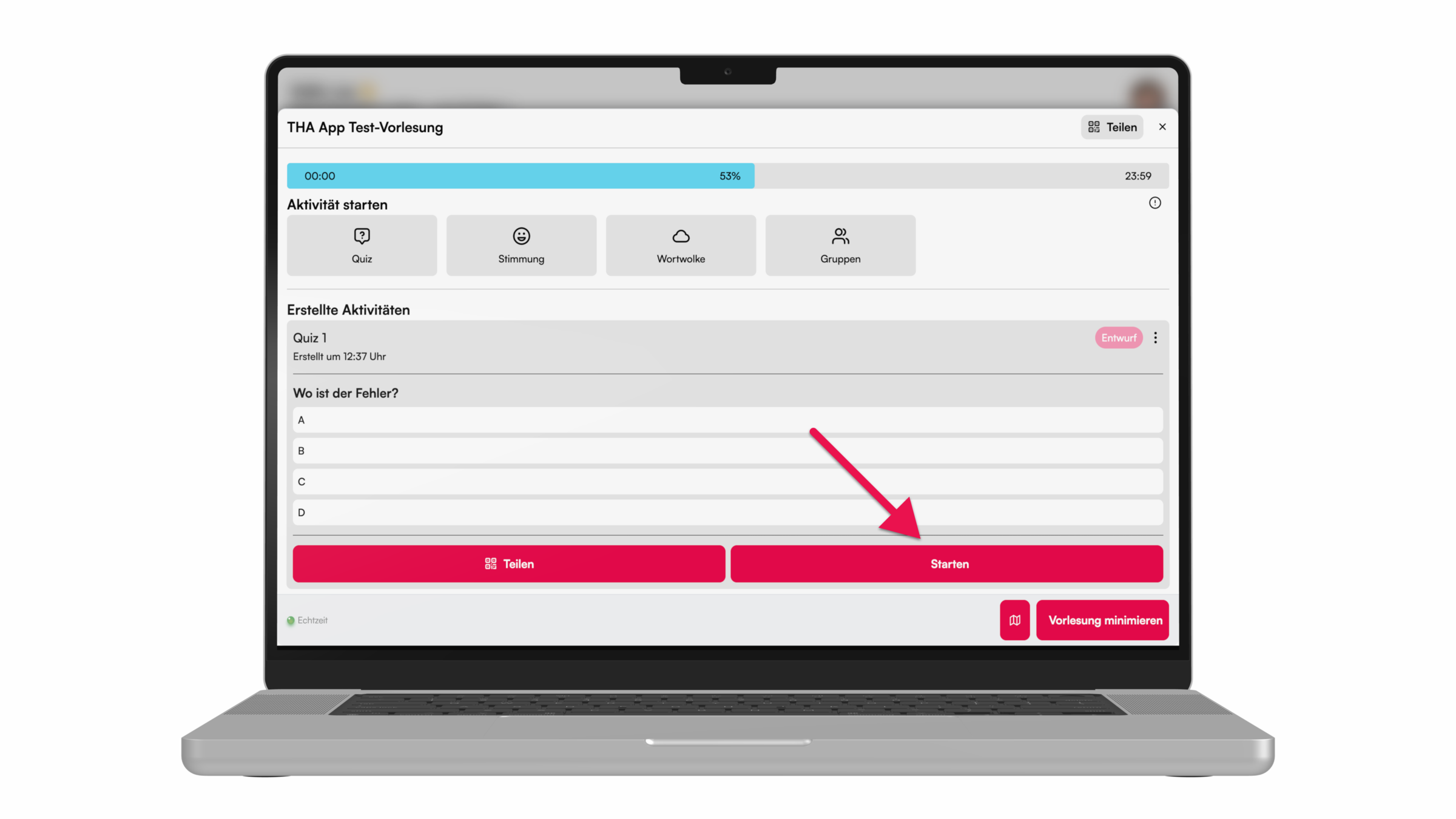 Mithilfe des Quizzes kann Peer Instruction einfach in der Vorlesung eingesetzt werden.