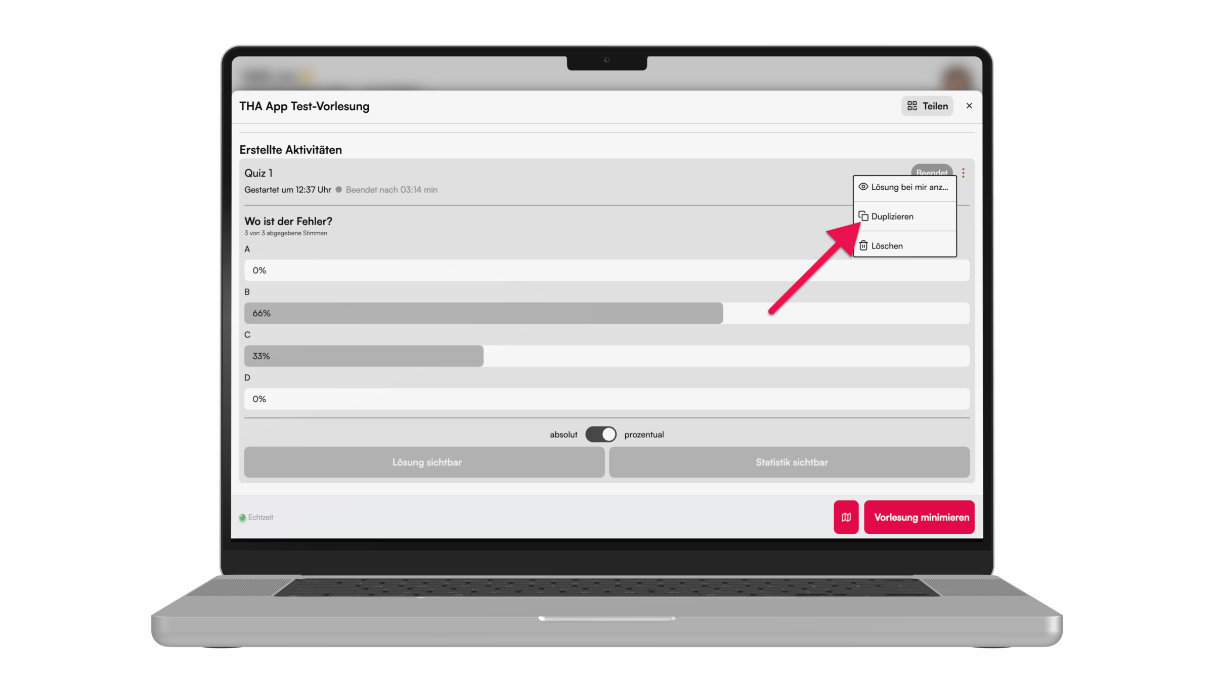 Über die Funktion „Quiz duplizieren“ kann leicht der zweite Durchlauf des Quizzes gestartet werden.