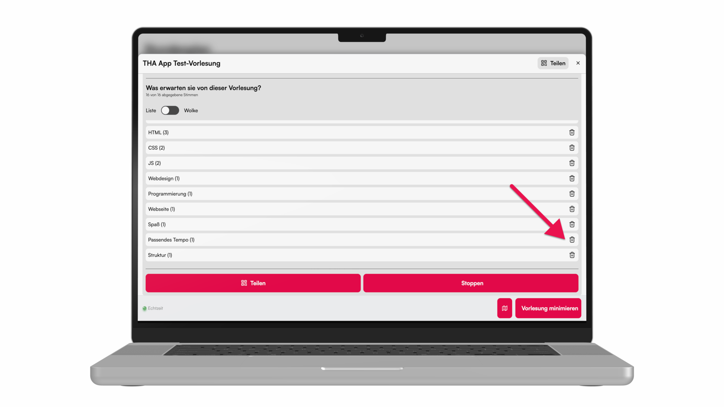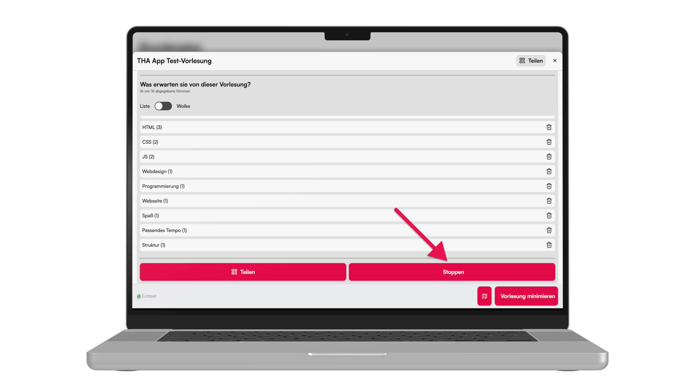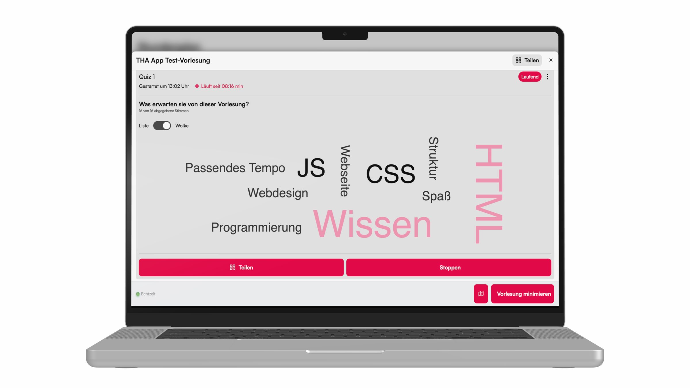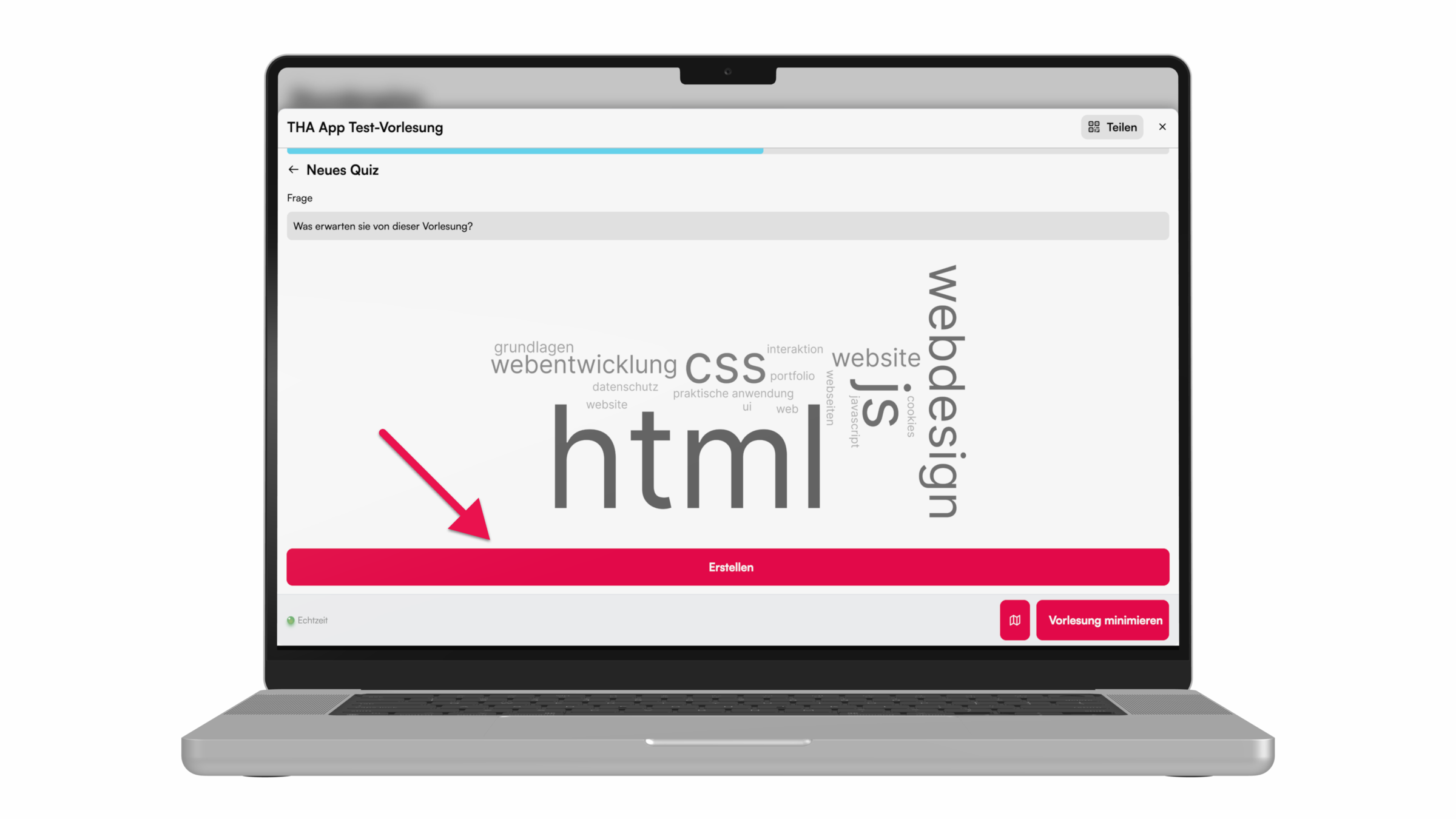 Für ein Brainstorming während der Vorlesung, kann eine Abfrage mit der Wortwolke durchgeführt werden. Hier zeigen wir, wie's geht.