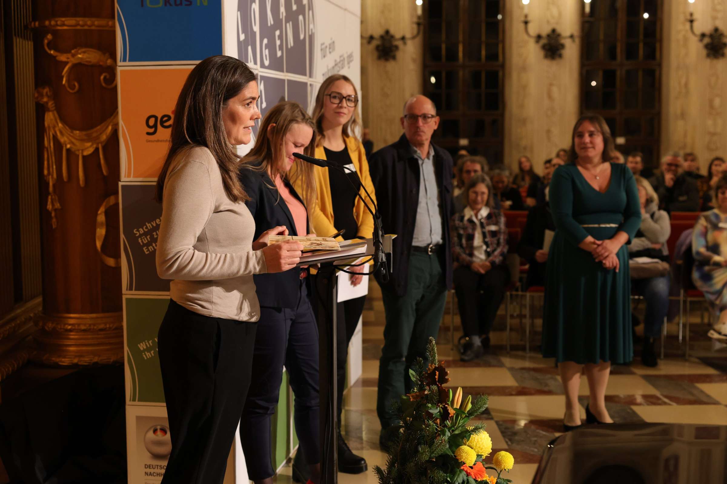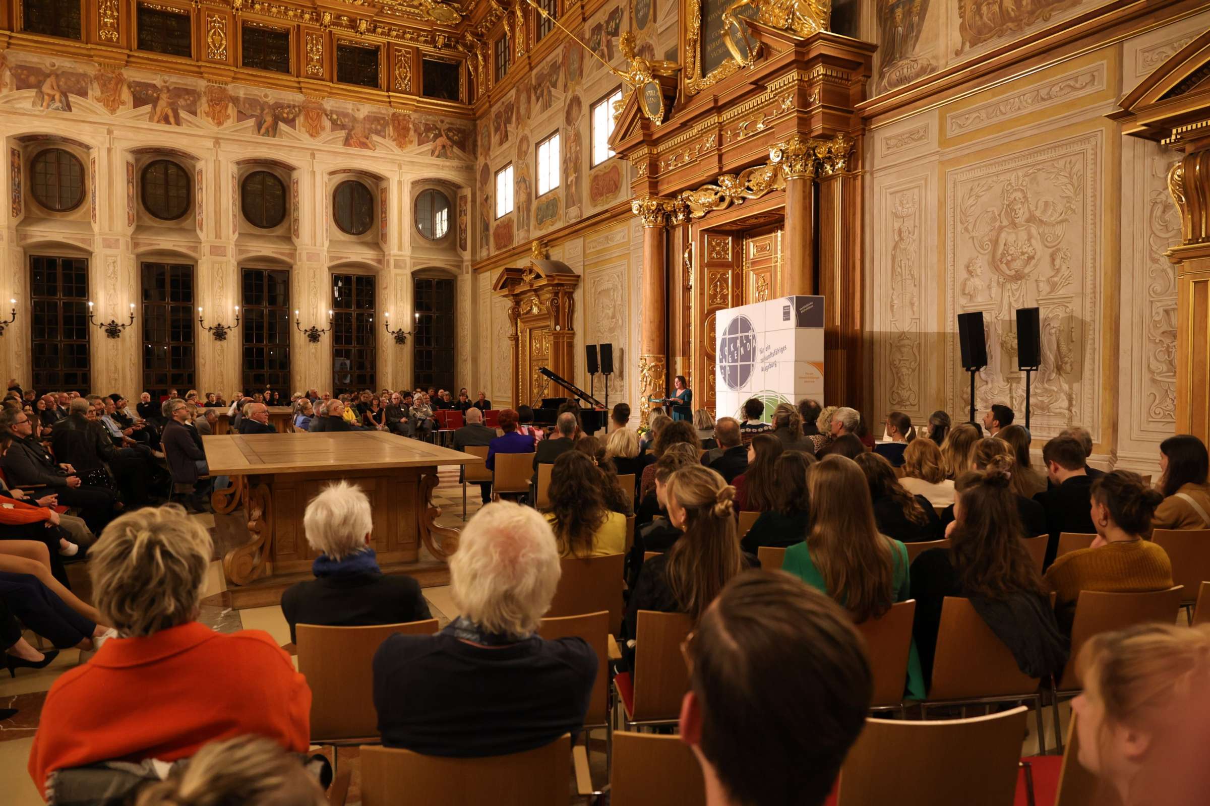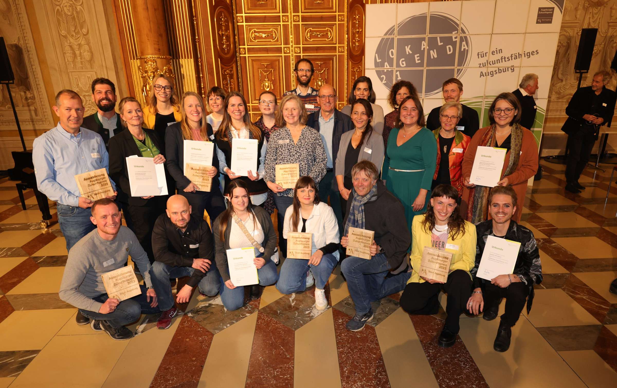 Mehr als 300 geladene Gäste waren in den Goldenen Saal im Rathaus der Stadt Augsburg zur Verleihung von insgesamt sieben Augsburger Zukunftspreisen 2023 gekommen. Neben der Urkunde und einer Plakette aus Holz erhielten die Preisträgerinnen und Preisträger jeweils ein Preisgeld in Höhe von 1.000 Euro pro Preis-Kategorie. Ein Preis wurde zu je 500 Euro geteilt. Für den Zukunftspreis 2023 haben sich 50 Projekte beworben. Eingereicht wurden sie von Vereinen, Institutionen, Schulen, Wirtschaftsbetrieben und Privatleuten. Fünf unabhängige Jurys aus Politik, Zivilgesellschaft und Wirtschaft sowie eine Jury aus Schülerinnen und Schülern der Klasse 8d der Agnes-Bernauer-Realschule haben die jeweiligen Preisträger und Preisträgerinnen ausgewählt. Finanziell unterstützt wird der Zukunftspreis von der Stadtsparkasse Augsburg. Traditionell haben die Bewerberinnen und Bewerber auch in diesem Jahr erst bei der Preisverleihung erfahren, wer zu den Gewinnerinnen und Gewinnern zählt.
