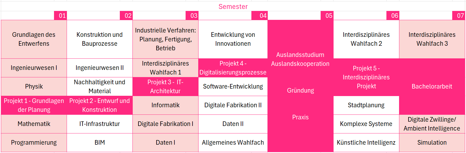 Die Gebäude, Quartiere und Städte der Zukunft sind smart, vernetzt, klimaneutral und denken mit. Als Digitaler Baumeister bist du im Zentrum dieser Veränderung und Teil der digitalen Transformation am Bau. Du kannst die Zukunft der intelligent vernetzten Stadt mitgestalten. Mit den angeeigneten, multidisziplinären Kompetenzen und dem aktuellen Wissen aus der Informatik, Bautechnik und Architektur bist du bestens gerüstet kreative Lösungen für die Stadt der Zukunft zu entwickeln und anzuwenden. Durch Dich und die digitalen Werkzeuge werden die Herausforderungen der Zukunft wie Urbanisierung, Nachhaltigkeit und Effizienzsteigerung transparenter, effektiver und zielgerichteter gemeistert.