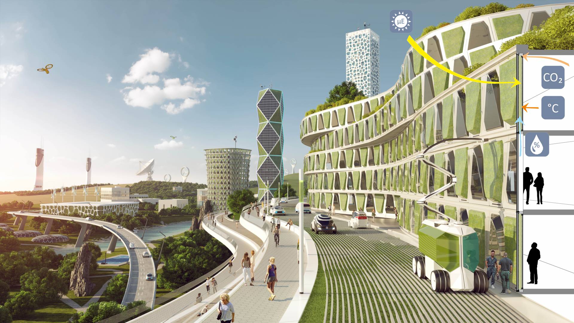 Aus Algen können sowohl Wirk- als auch Wertstoffe für unterschiedlichste Anwendungsfelder in der Industrie extrahiert werden. Zur Kultivierung von Mikroalgen wurden fassadenintegrierte Photobioreaktoren entwickelt, durch deren Einsatz der Verbrauch von Ackerfläche vermieden wird. Damit wird der sogenannten Teller-Tank-Problematik aus dem Wege gegangen.
