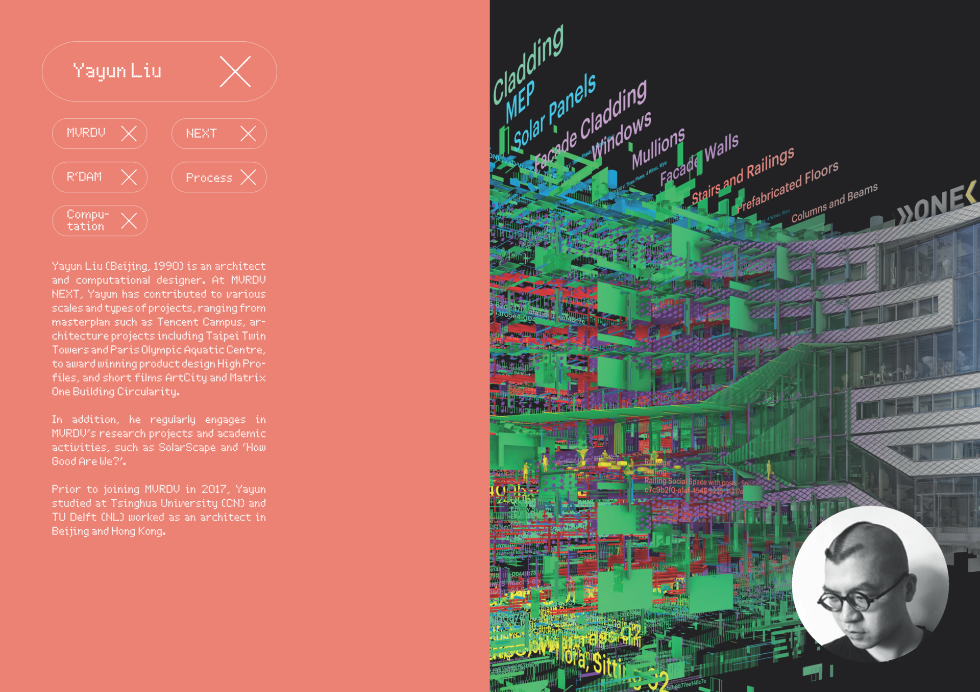 Reusing not only contributes to sustainability, but also offers the opportunity to reimagine existing materials in other ways: Recompose the forms, repurpose the functions, and represent other stories. Yayun will talk about the pivotal role of data-driven design in this reimagination process, either beyond or before material’s second life, through several reuse case studies of MVRDV NEXT.