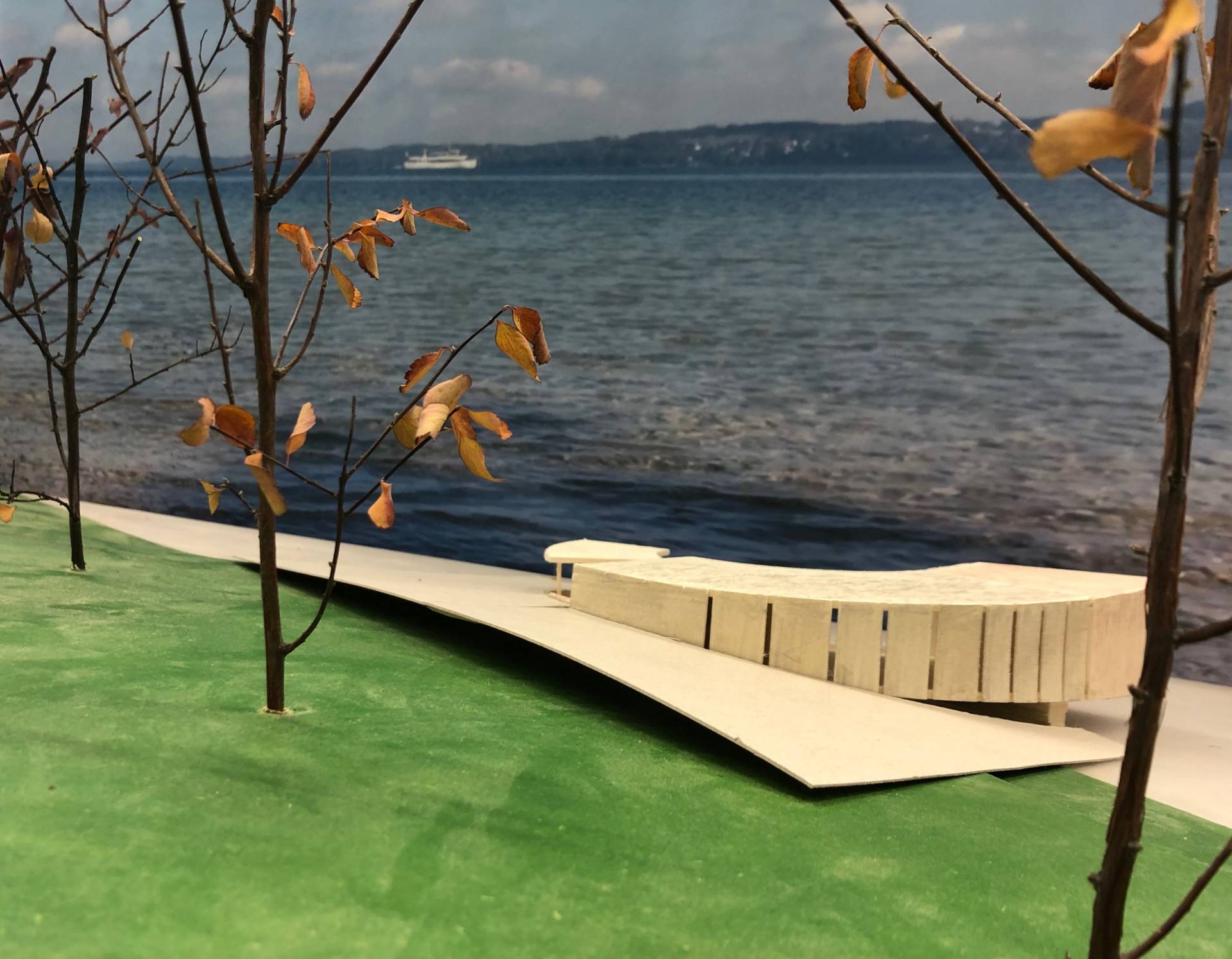 Durch die exponierte Lage am Ufer des Sees muss das Objekt Fernwirkung erzeugen und sich zugleich im Nahbereich in Größe und Form feinfühlig in die Qualitäten der 100-jährigen Bau- und Parkanlage einfügen. Entstanden sind so Raumskulpturen mit hohem ästhetischem und funktionalem Anspruch.