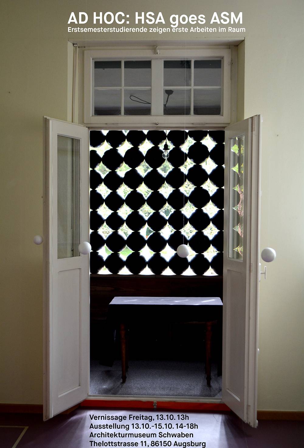 Erstsemesterstudierende aus dem Studiengang Architektur haben als erste Aufgabe, die Buchegger-Villa, die das Architekturmuseum Schwaben beherbergt, mit räumlichen Installationen zu inszenieren. Dazu läuft eine Ausstellung im Architekturmuseum Schwaben, von Freitag, 13. Oktober ab 13 Uhr bis Sonntag, 15. Oktober um 18 Uhr. Es sind erste Arbeiten im Raum zu sehen.