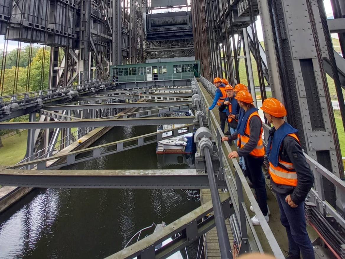 Tag 3: Die Exkursionsgruppe war auf die Großbaustelle „EDGE Eastside“ eingeladen, auf welcher für das 39-stöckige Gebäude bereits 37 Stockwerke im Rohbau fertiggestellt sind. Anschließend besichtigten unsere Studierende zwei Schiffshebewerke im Dorf Niederfinow.